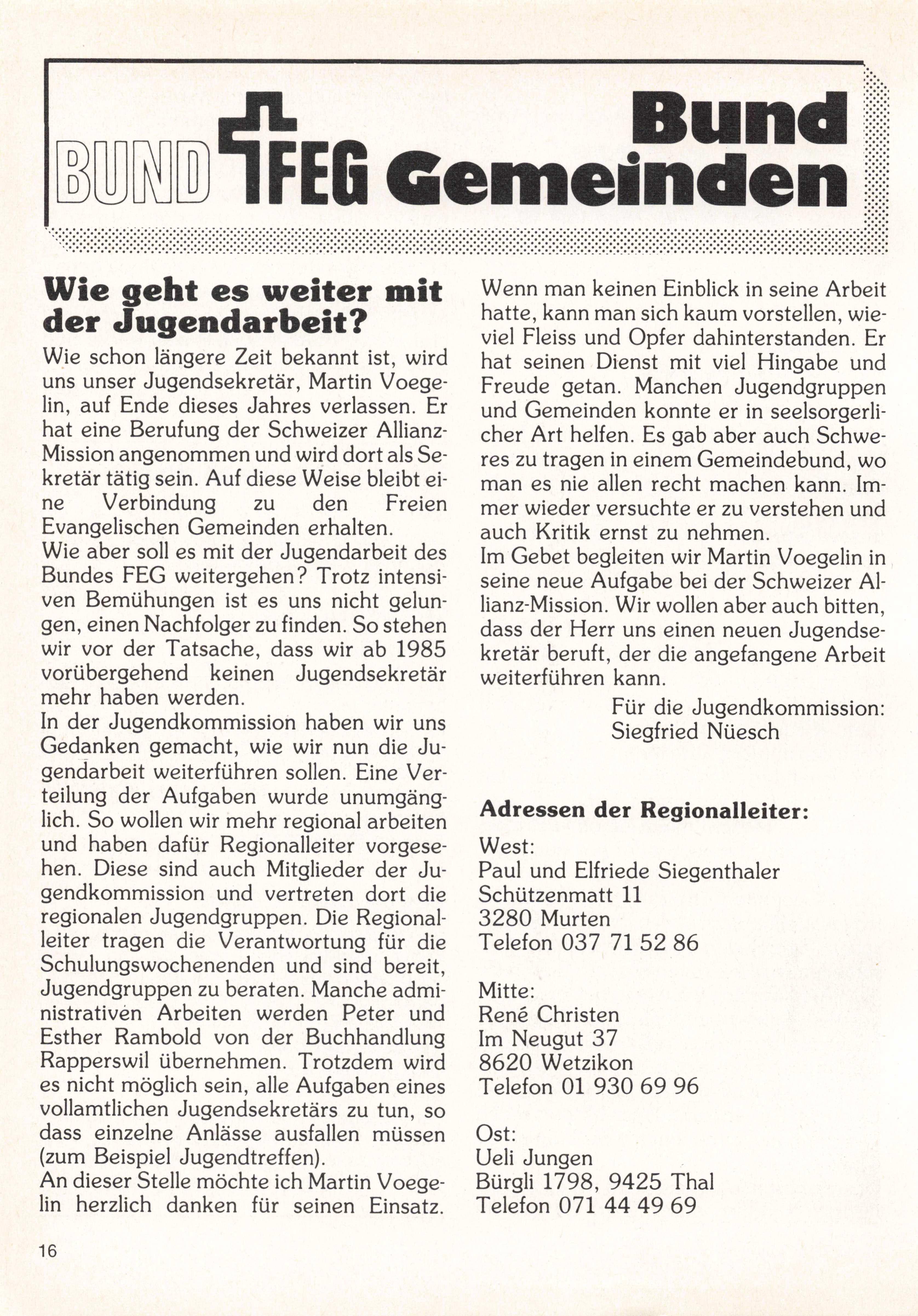 Jugendsekretariat: Martin Voegelin, Hünigenstrasse, 3510 Niederhünigen, Tel. 031 9918 38.