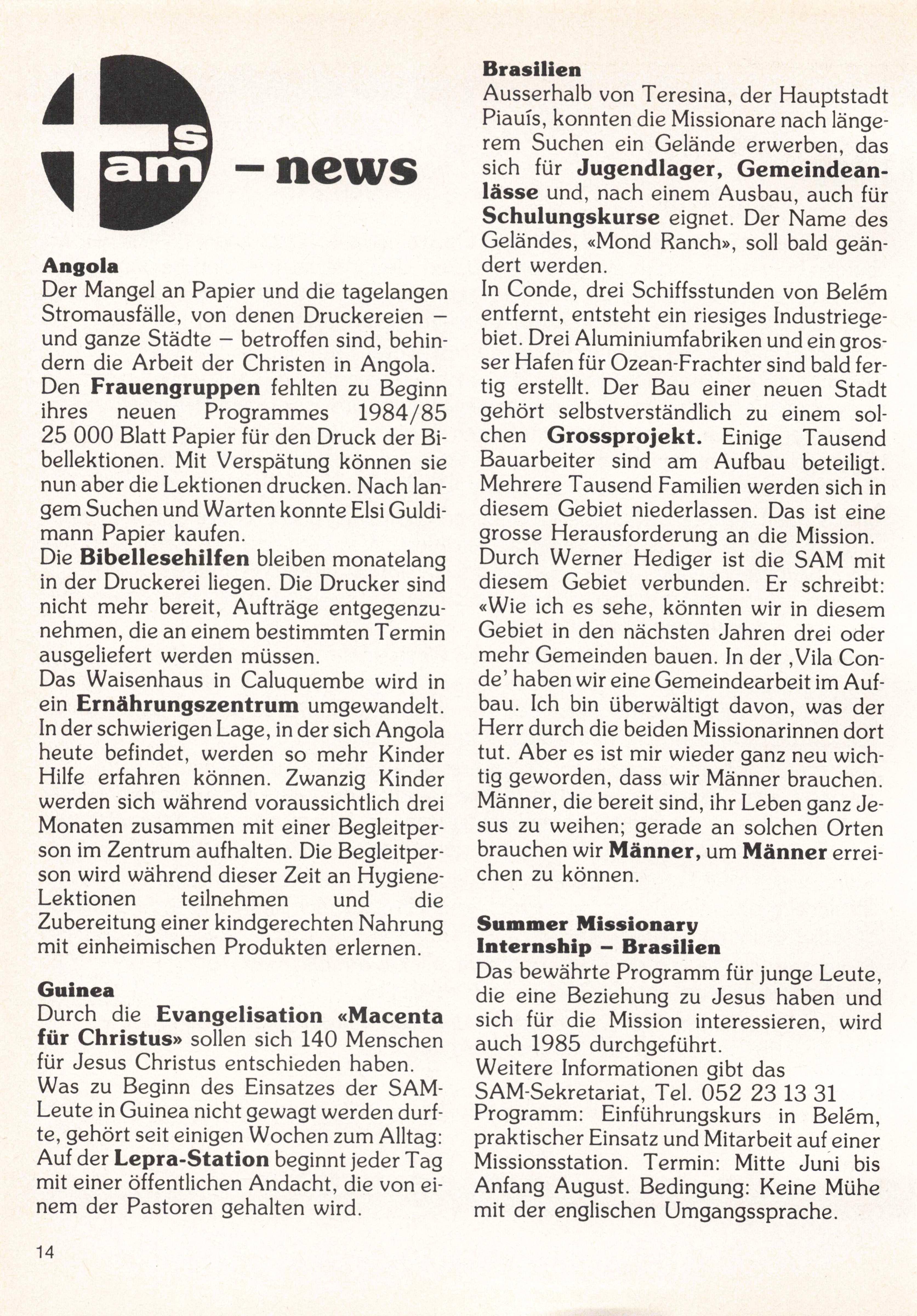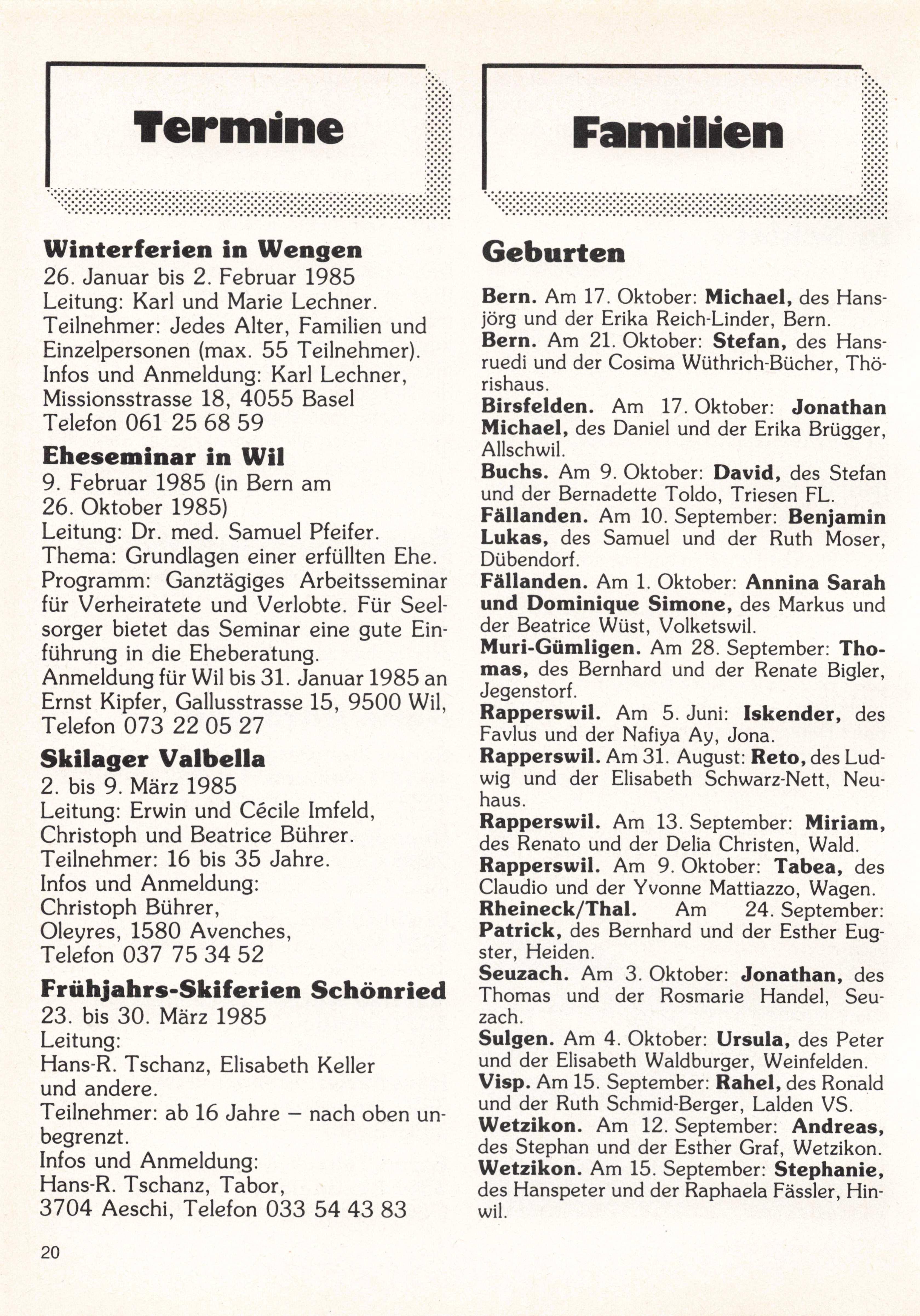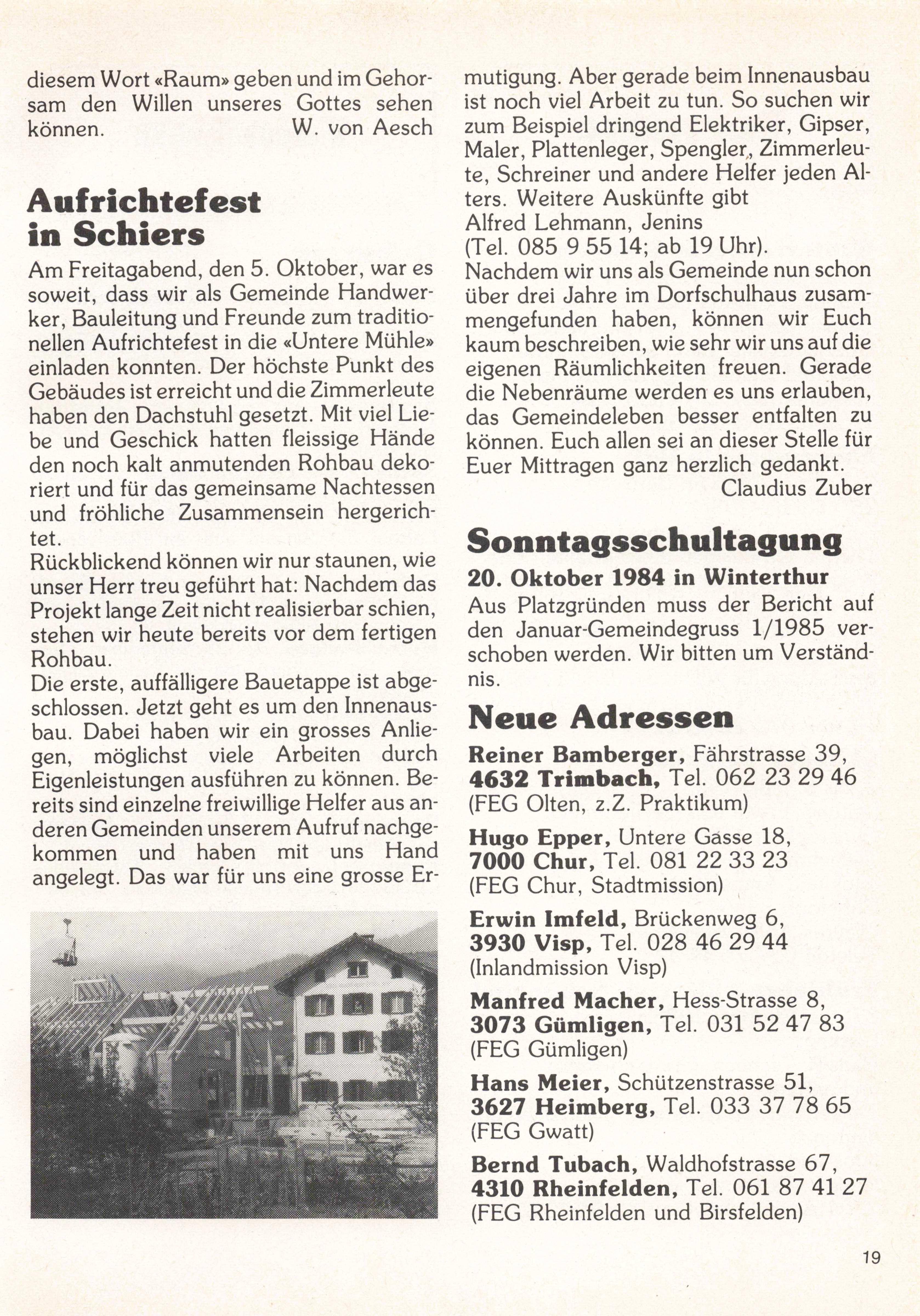 20. Oktober 1984 in Winterthur Aus Platzgründen muss der Bericht auf den Januar-Gemeindegruss 1/1985 ver schoben werden. Wir bitten um Verständtet.
