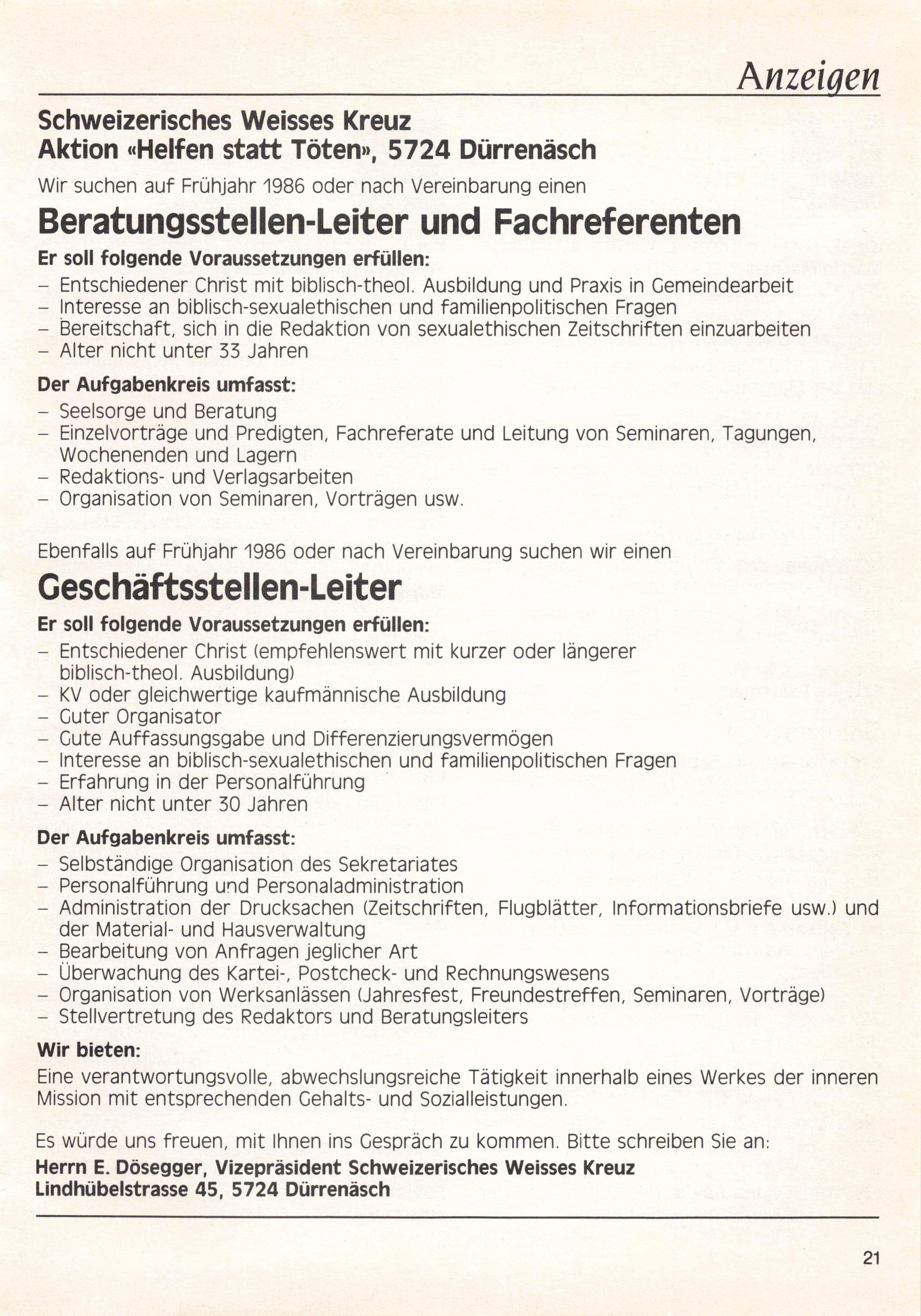 Wir suchen auf Frühjahr 1986 oder nach Vereinbarung einen Beratungsstellen-Leiter