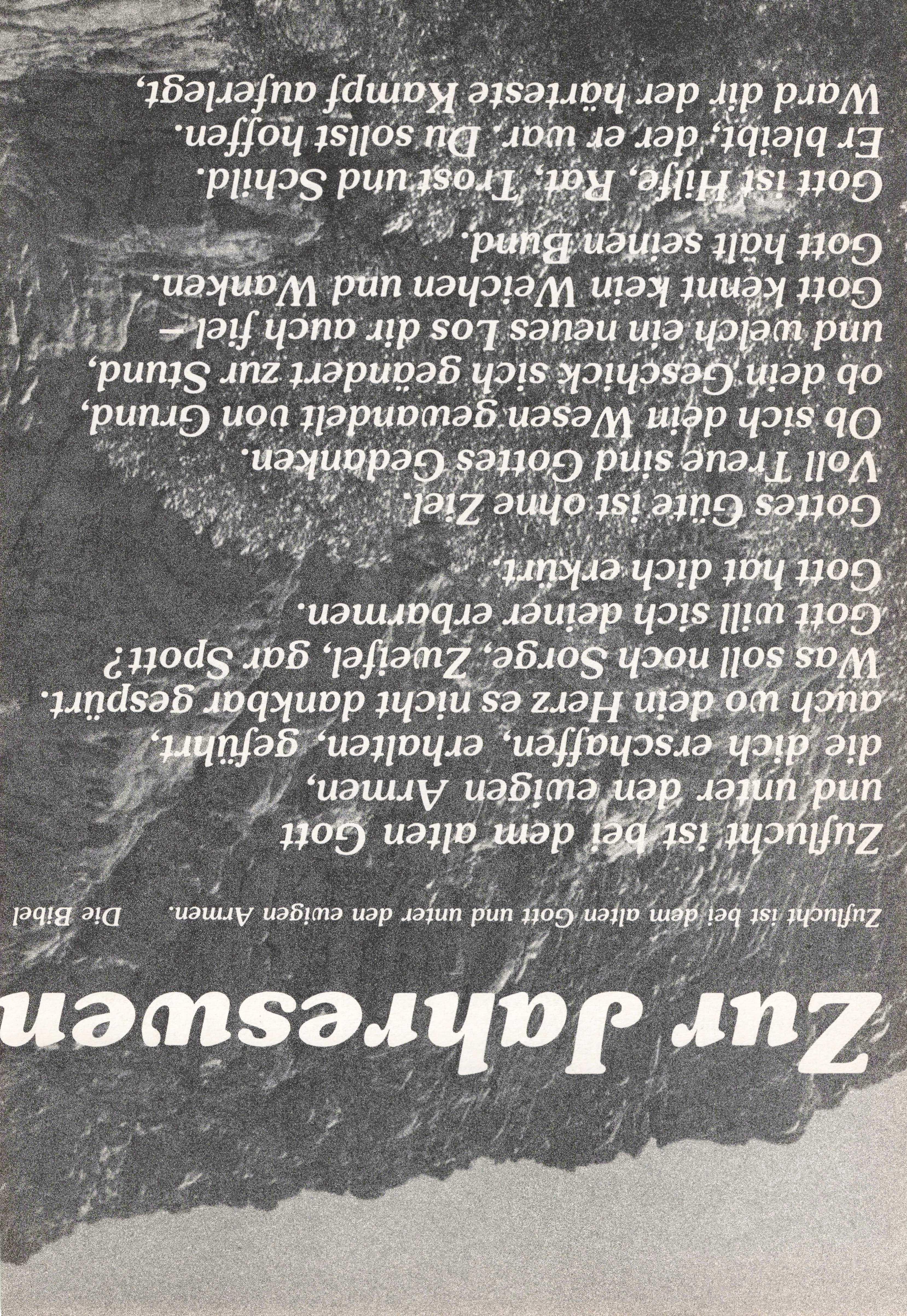 Ich könnte weiterfahren im Psalm 103. Aber das möchte ich nun Ihnen zur Bear beitung überlassen, um noch zum andern Beispiel zu kommen: