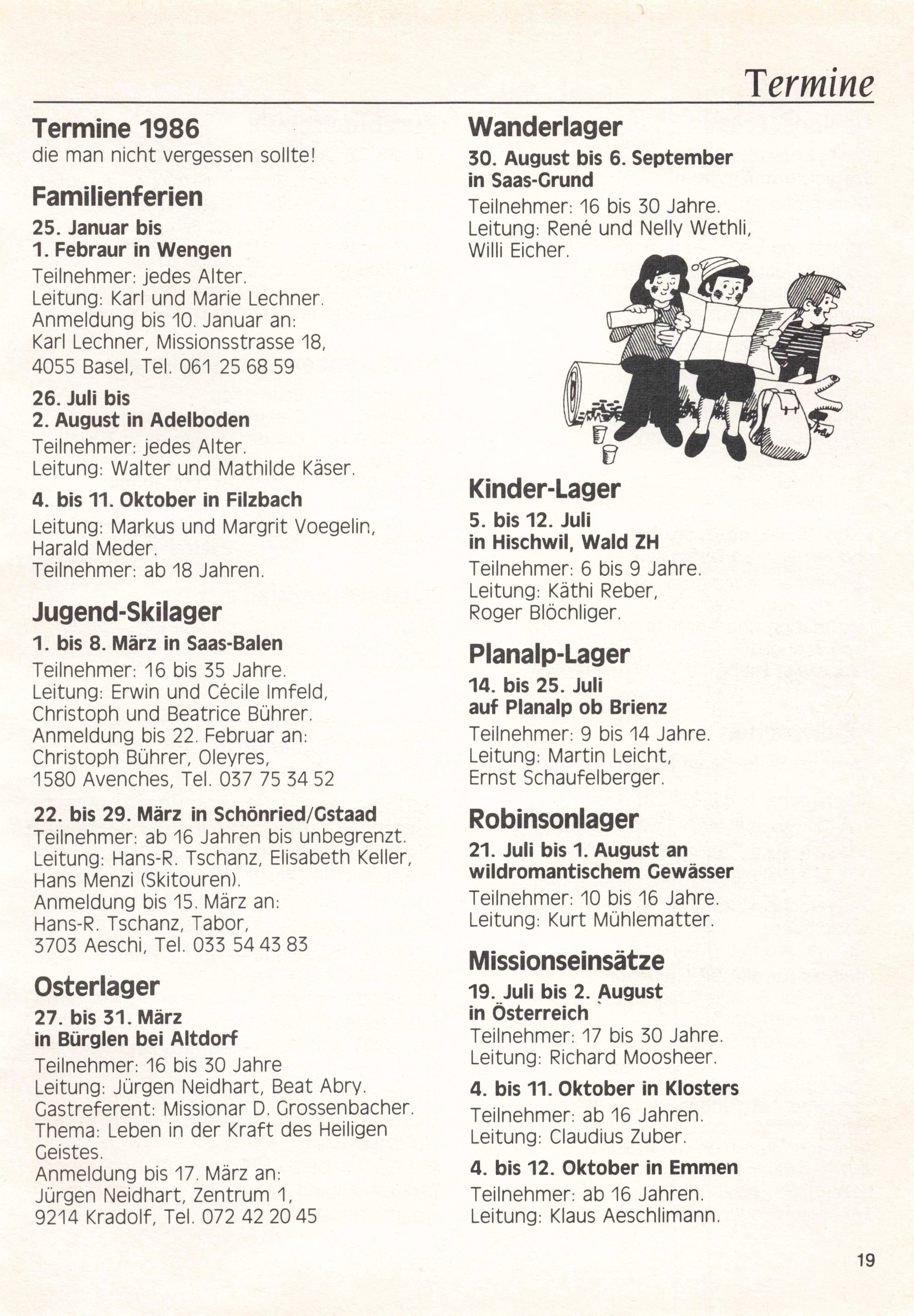 finden Sie im Prospekt «Ferien - DatenKurse 1986» - erhältlich im Bundessekretariat (Adresse Seite 2) oder in den Gemeinden.