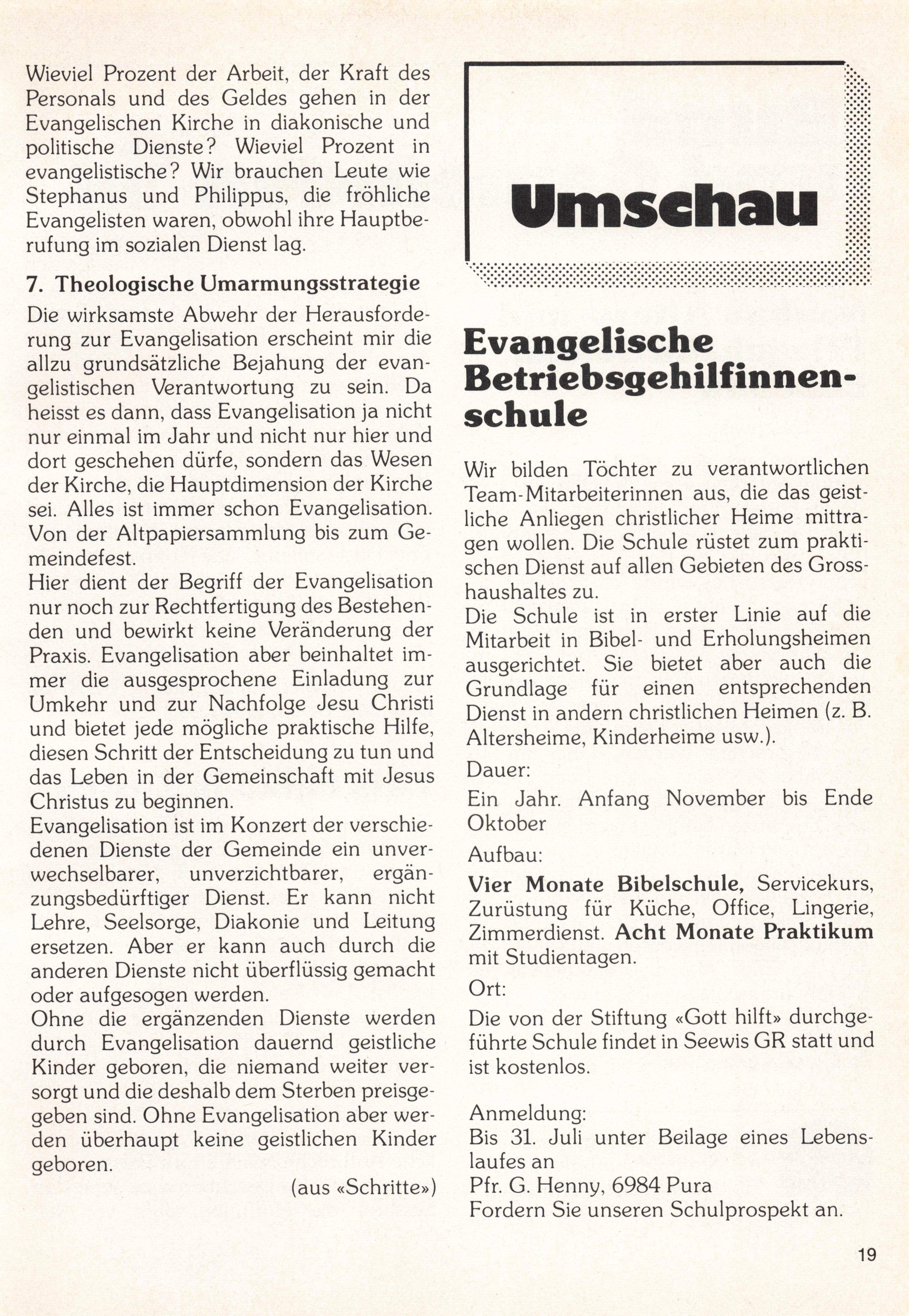 Pfr. G. Henny, 6984 Pura Fordern Sie unseren Schulprospekt an. (aus «Schritte»)
