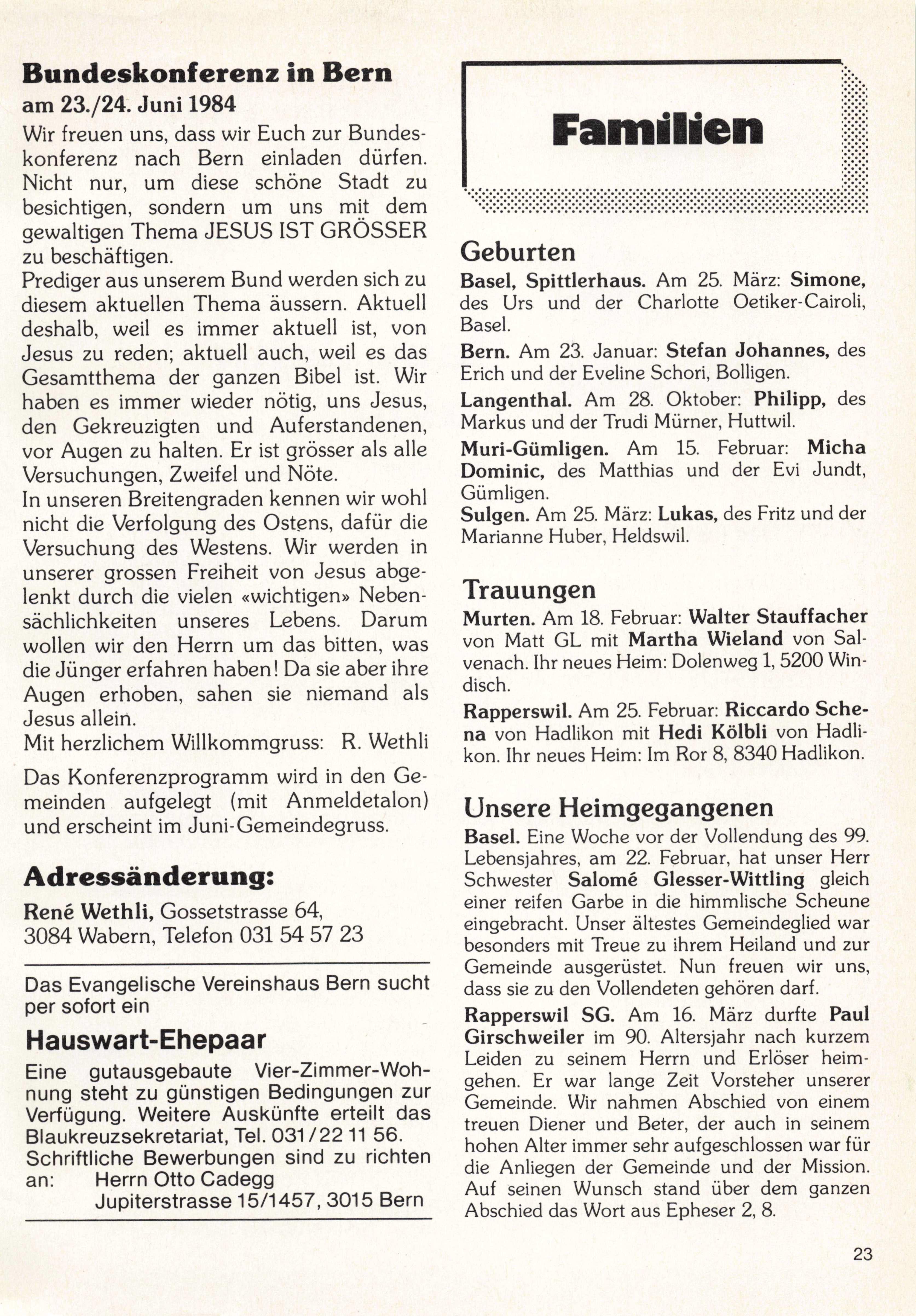 Bundeskonferenz in Bern am 2S./24. Juni 1984