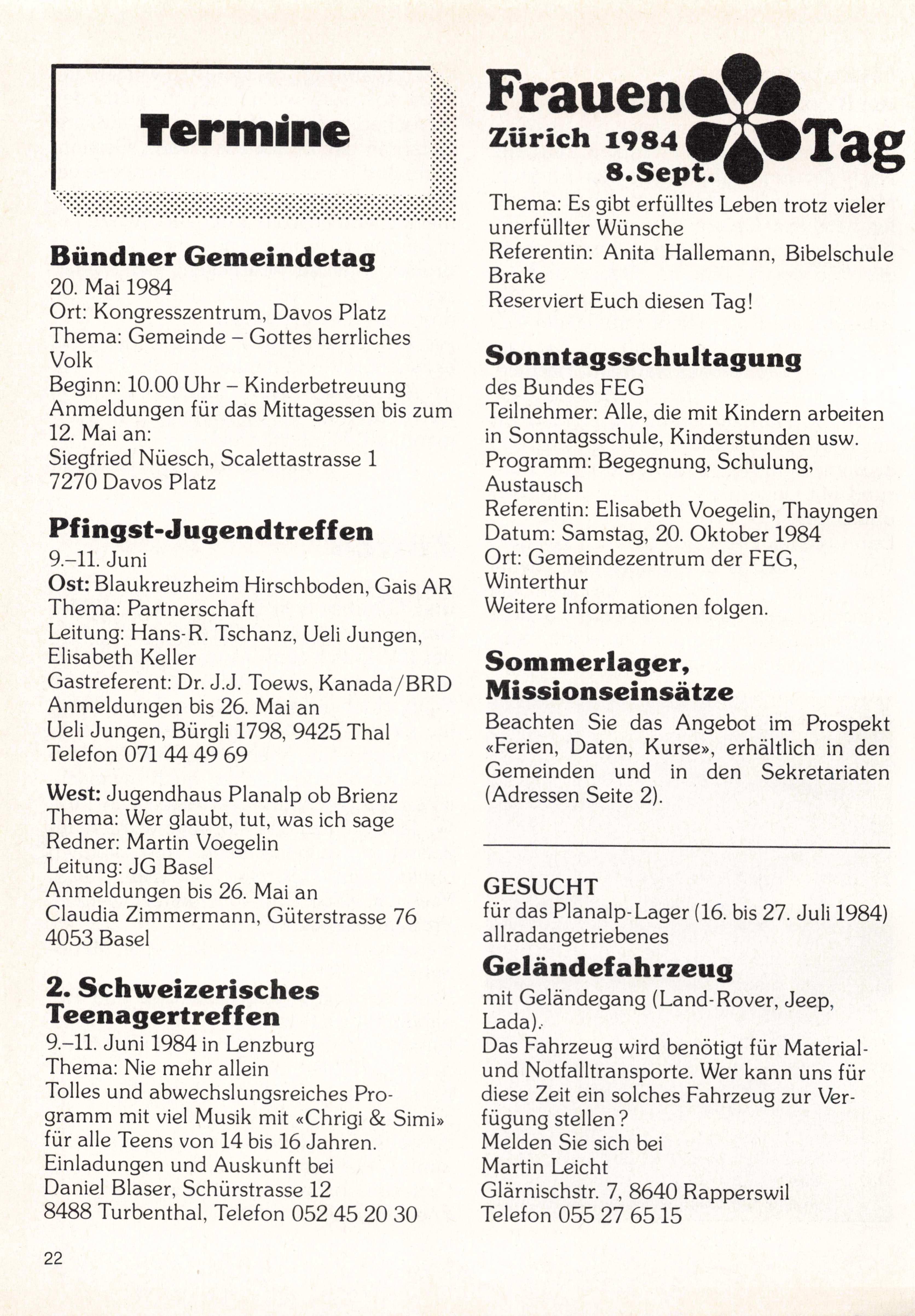 Jugendsekretariat: Martin Voegeiin, Hünigenstrasse, 3510 Niederhünigen, Tel. 031 9918 38.
