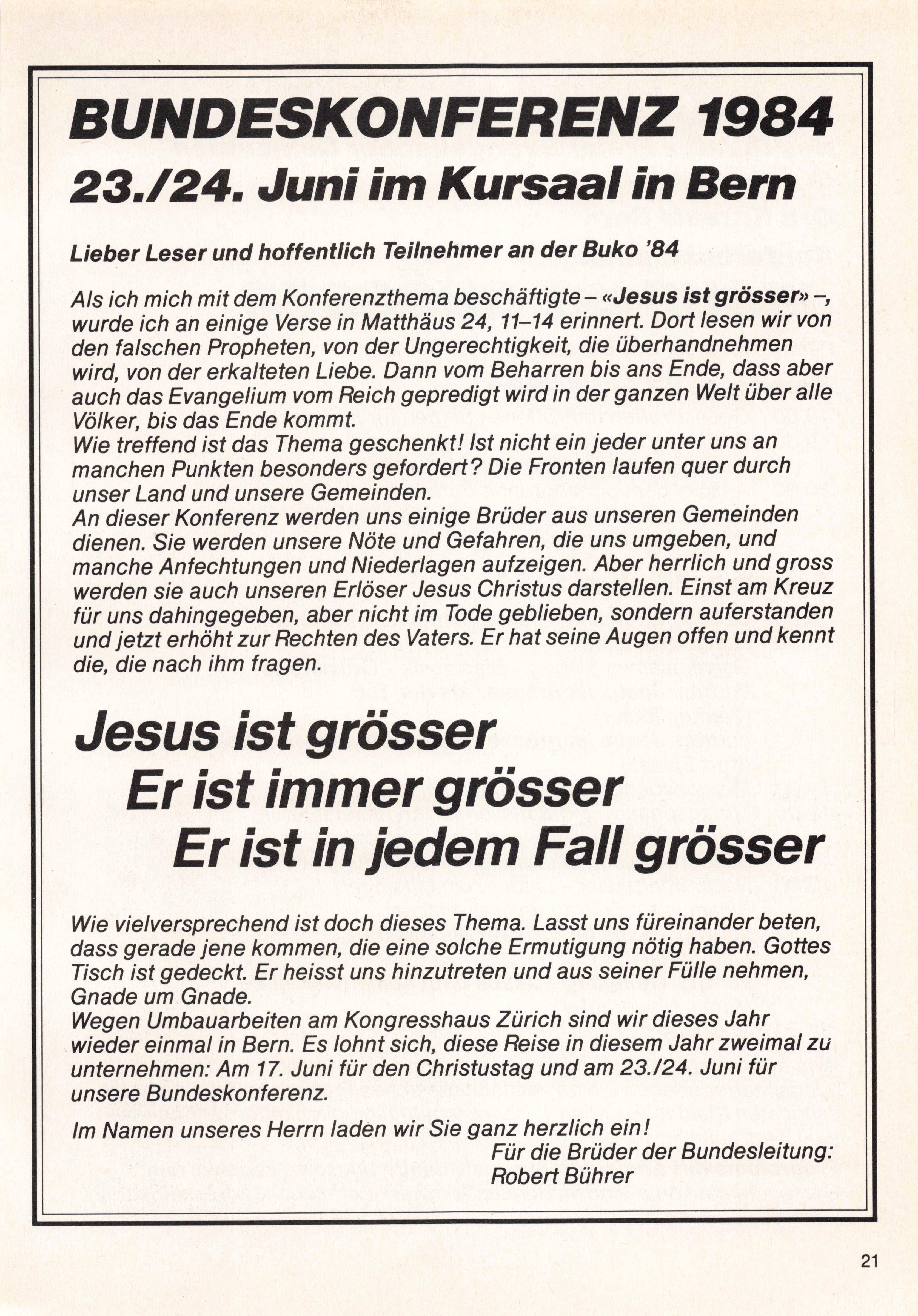 Lieber Leser und hoffentlich Teilnehmer an der Buko ’84