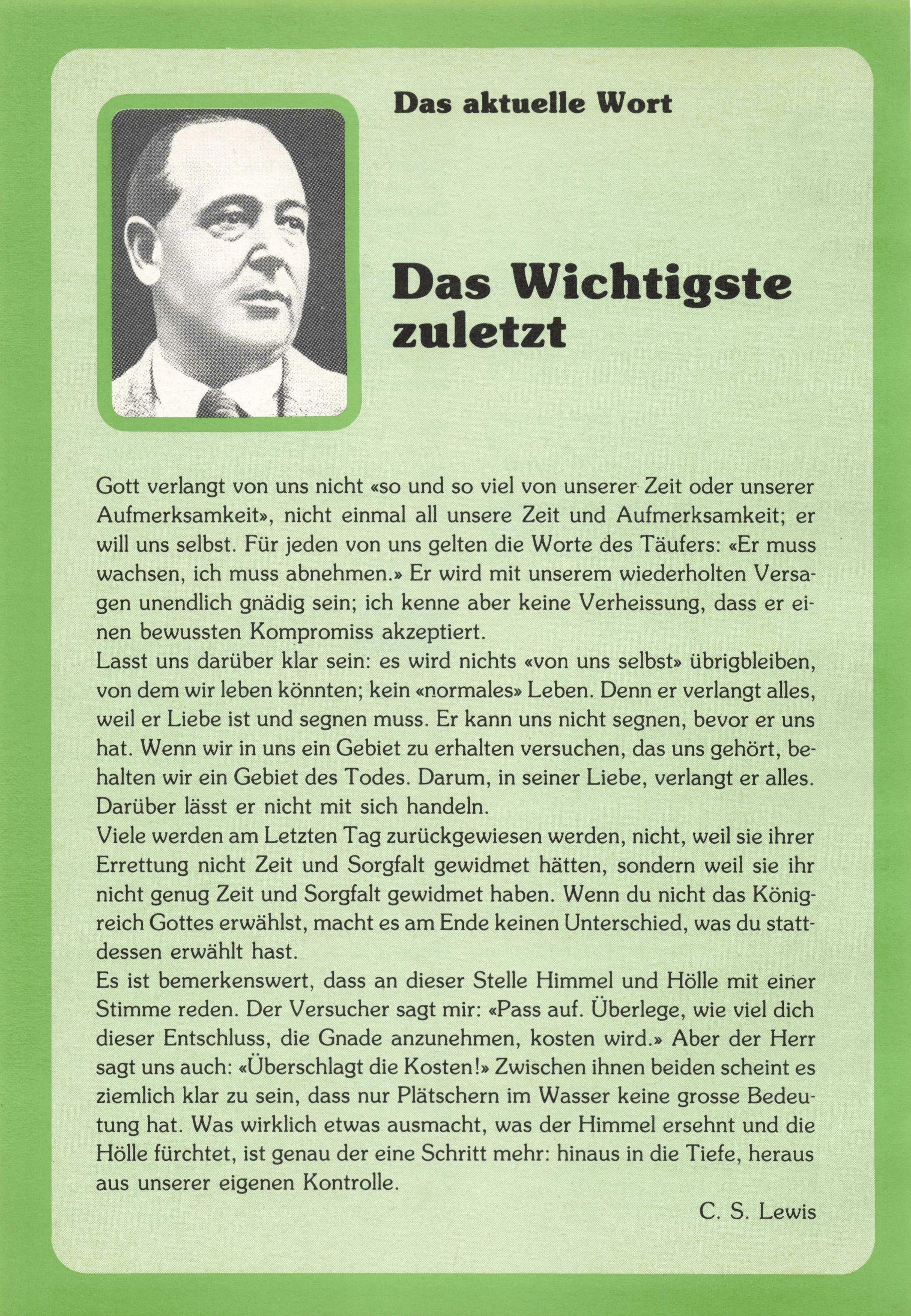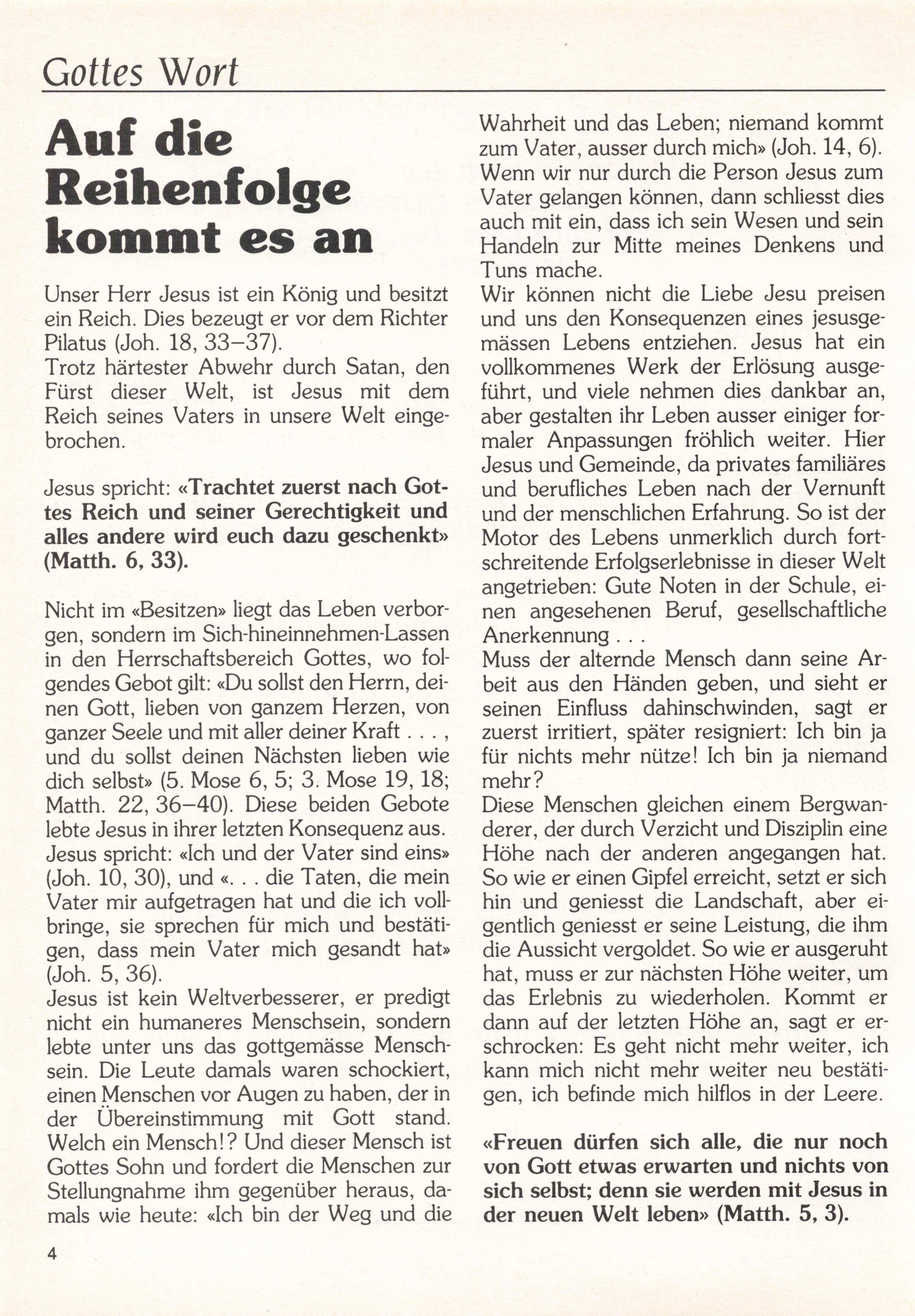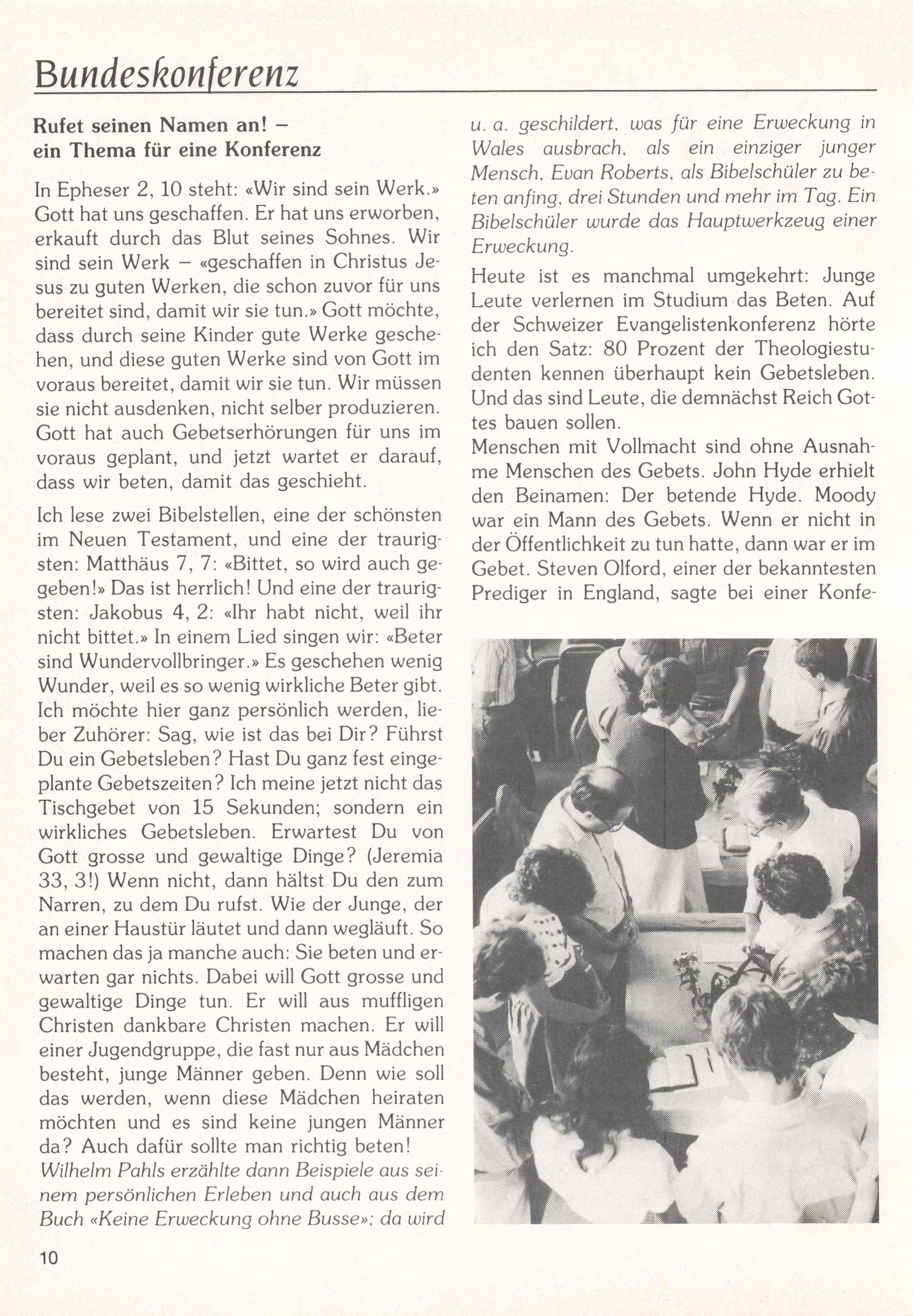 Das Wichtigste zuerst - Bundeskonferenz 1985 in Bern Predigt - Eindrücke - Bilder Bund und Gemeinden Termine Umschau