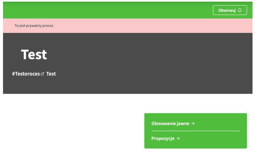 Przykład: proces może zawierać debatę (w której można dyskutować), głosowanie (gdzie oddaje się głos) oraz ankietę (gdzie wyraża się opinię w mniej formalny sposób).