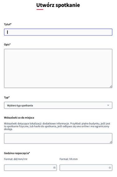 Uwaga: Decidim nie służy do prowadzenia spotkań online. Można jednak wpisać miejsce lub link do spotkania, aby członkowie zespołu wiedzieli, gdzie się spotykamy.