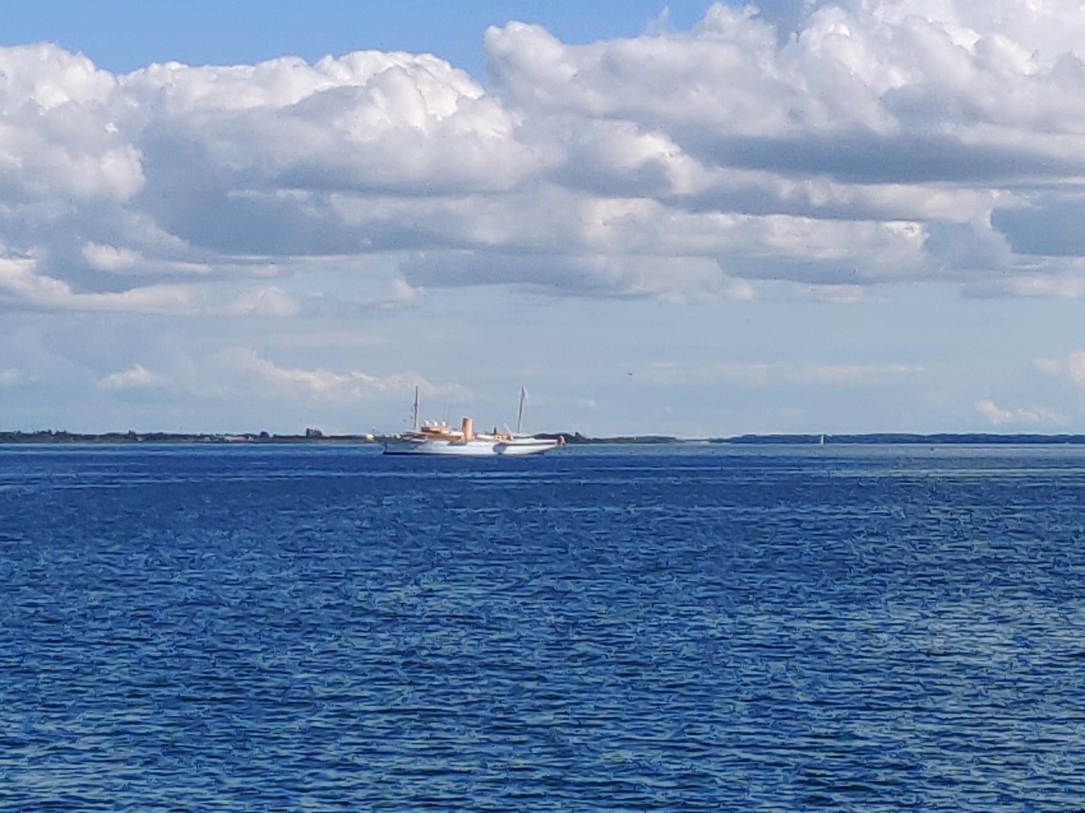 Vi anløb hyggelige Nysted om eftermiddagen. Efter en omgang minigolf fandt vi grillen frem. Mens vi sad der og grillede på grillpladsen kunne vi se en mindre folkevandring ud af molen for at se på Mæfikken. Som Johanne sagde: Vi sejler i en seværdighed!