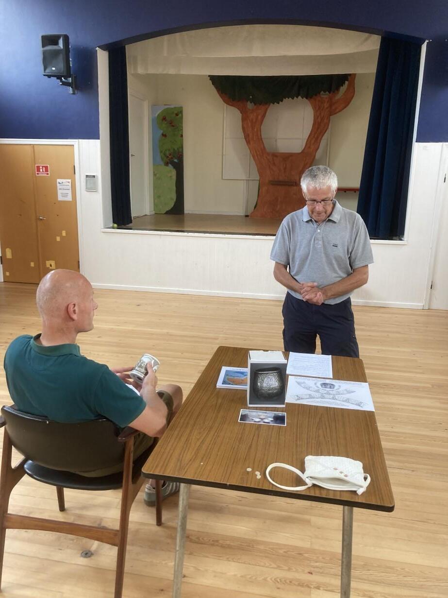 Vi kunne se, hvor Dronningen var oprigtigt interesseret i historien, fortalt af Søren Skou, om Fejø sølvskålen og beundrede den kopi, vi har i Arkivet.