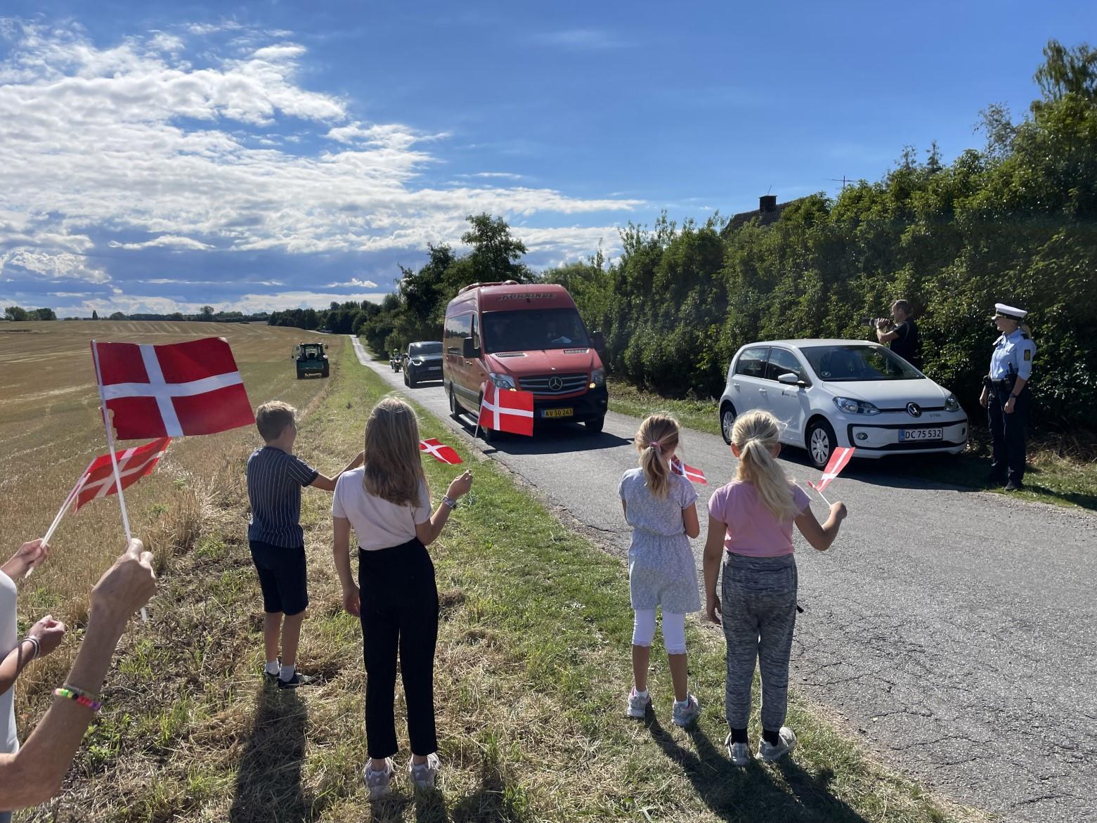 HerpåbagsidenbringervinoglefotosfradetdersketevedsidenafDronningensbesøg.UlrichMatrasJensenharfotograferetpigenpåmotorcyklenogvinkeholdetpåStoremosevej.