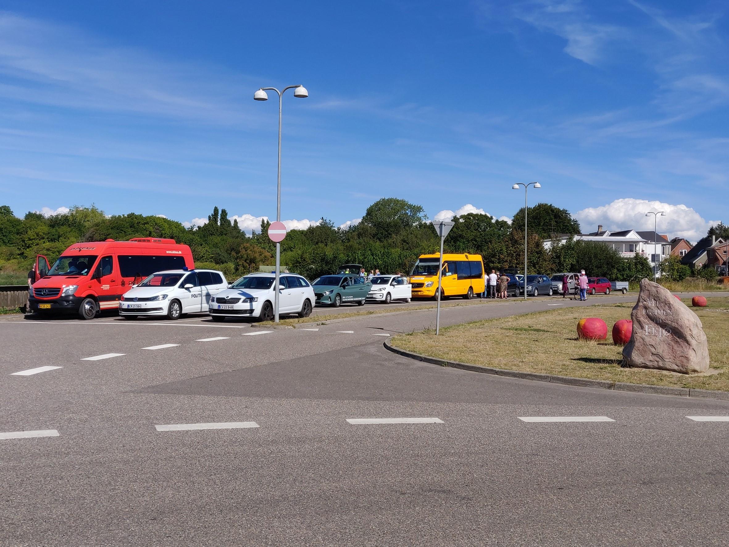 PolitibilerogbusserforladerFejø.Foto:VagnKjær-Hansen.