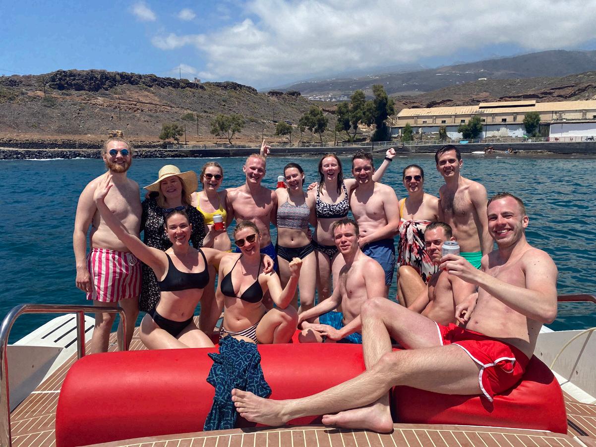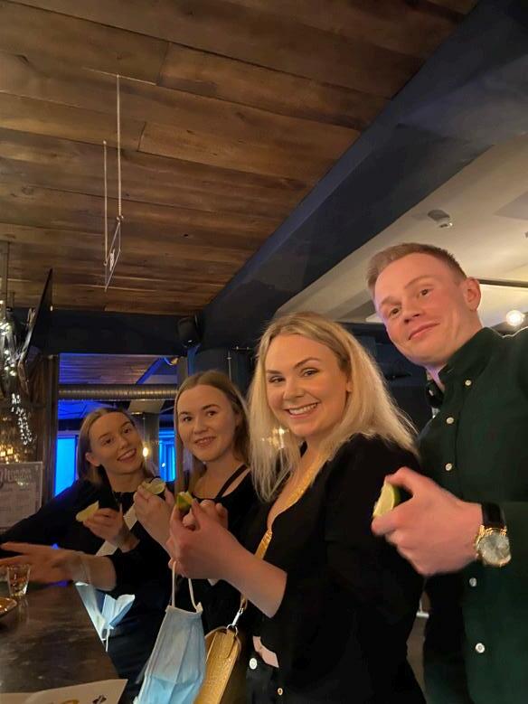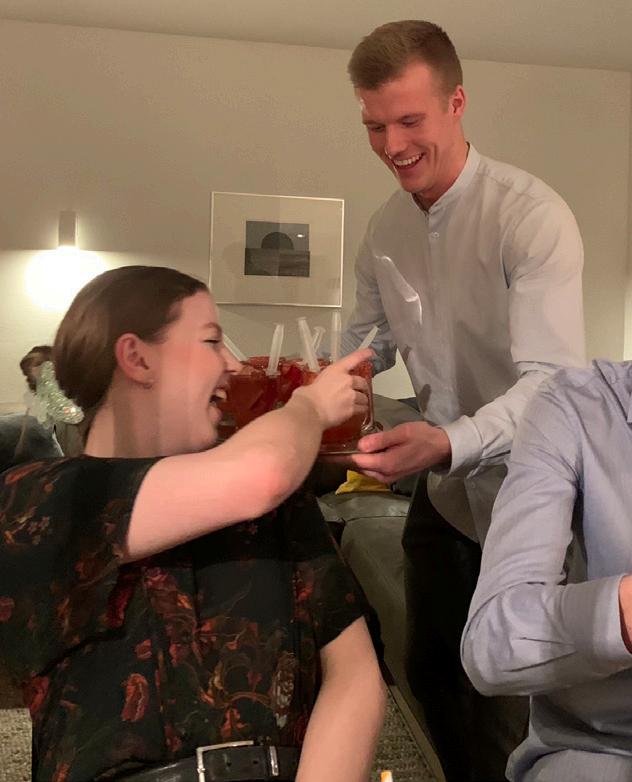 bylgja faraldursins á. Þá tóku við miklar sam komutakmarkanir sem héldust út önnina. Þ eir viðburðir sem nefndin hafði undirbúið féllu því niður. Ekkert varð af Spiritus vígslu og Októberfest, en nefndin dó þó ekki ráðalaus og hafa ý msir ný ir viðburðir litið dagsins ljós. Vísindaferðum í fyrirtæki var breytt í arvísindaferðir og haldin voru pub quiz í gegnum ar fundabúnað og heppnuðust þessir viðburðir vel. Félagslíf læknanema hefur því verið með óhefðbundnum hætti síðasta árið en ný ir viðburðir hafa heppnast vel og hefur þátttakan verið góð þrátt fyrir að þeir hafi farið fram á rafrænu formi. Á vorönn var létt á samkomutak mörkunum og tókst þá loks að halda hefðbundnar vísindaferðir. Einnig var haldið badmintonmót í Njarðvík sem var skemmti leg ný jung í félagslífinu. Undir lok annarinnar voru samkomutakmarkanir aftur hertar og varð því ekkert af fótboltamóti læknanema sem verður að bíða betri tíma.