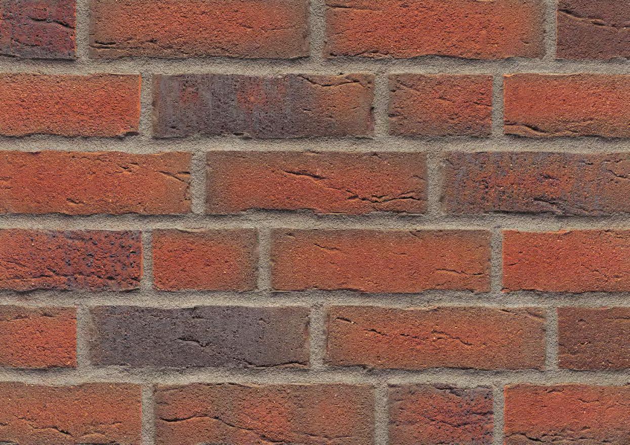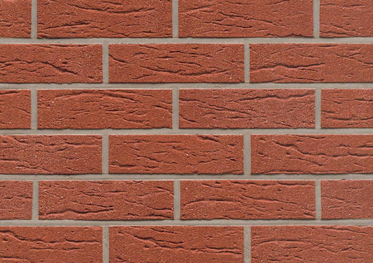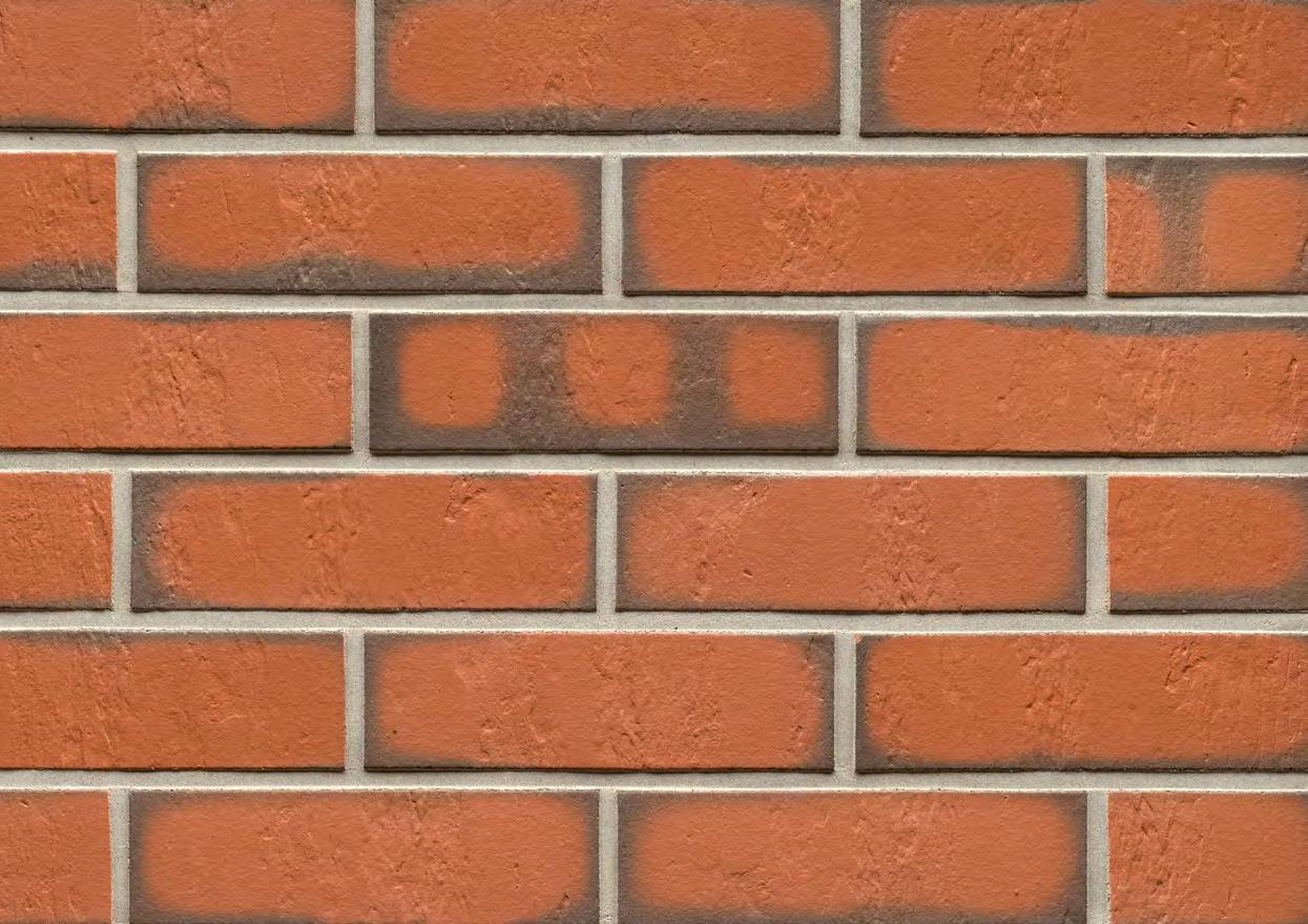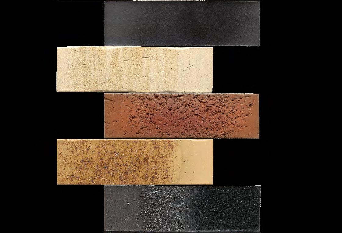 VASCU: Die Oberfläche der Vascu-Klinkerriemchen ist wenig strukturiert, unebene Kanten heben den klassischen BacksteinCharakter hervor. Bei vielen Sorten werden außerdem Kohle und Tonmehle zugesetzt und in verschiedensten Buntsortierungen gebrannt.