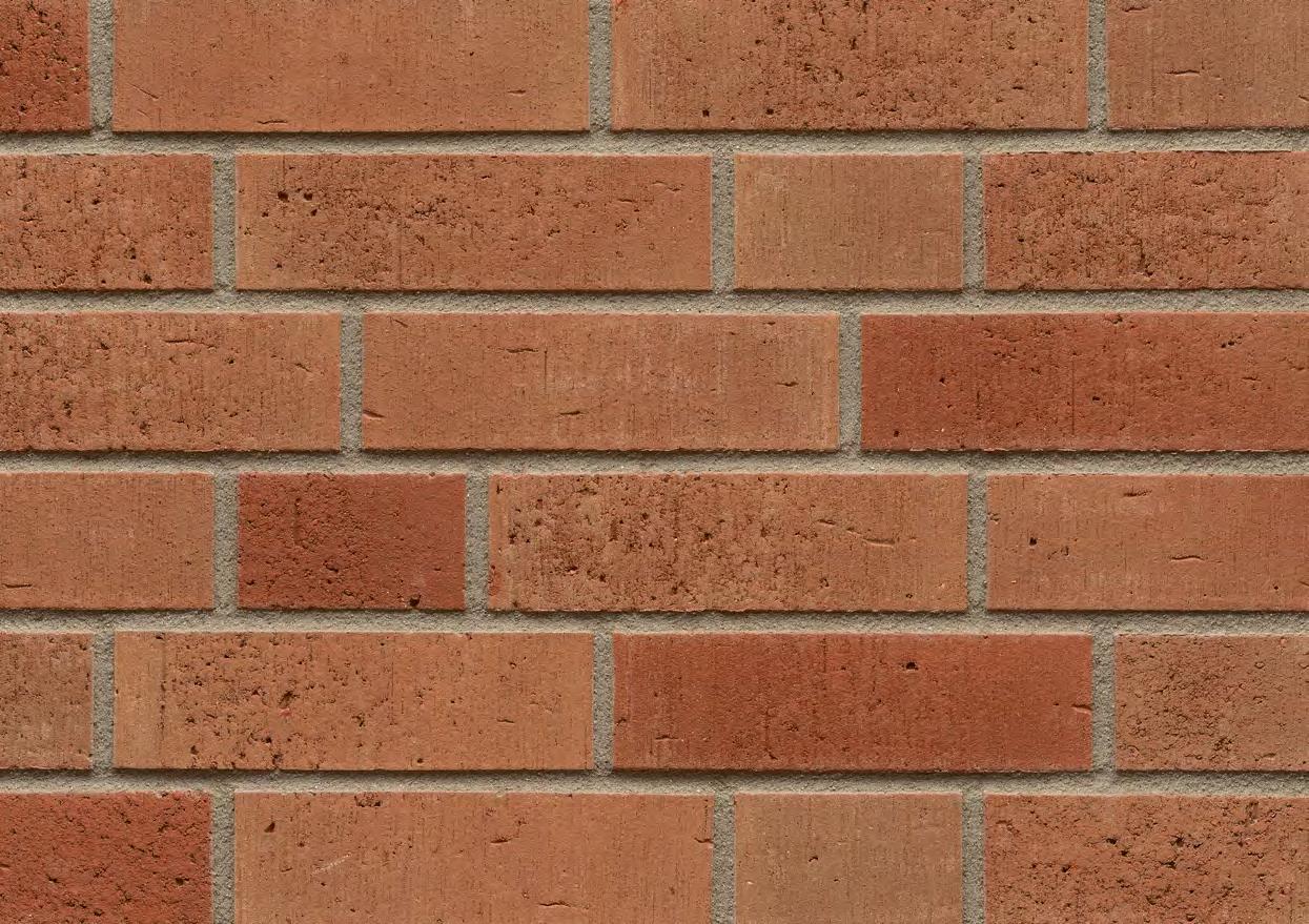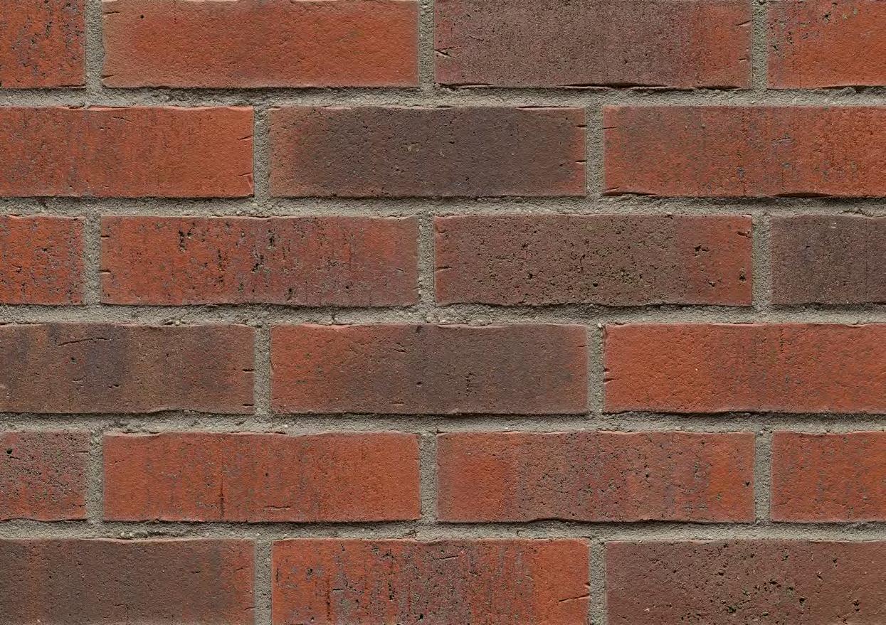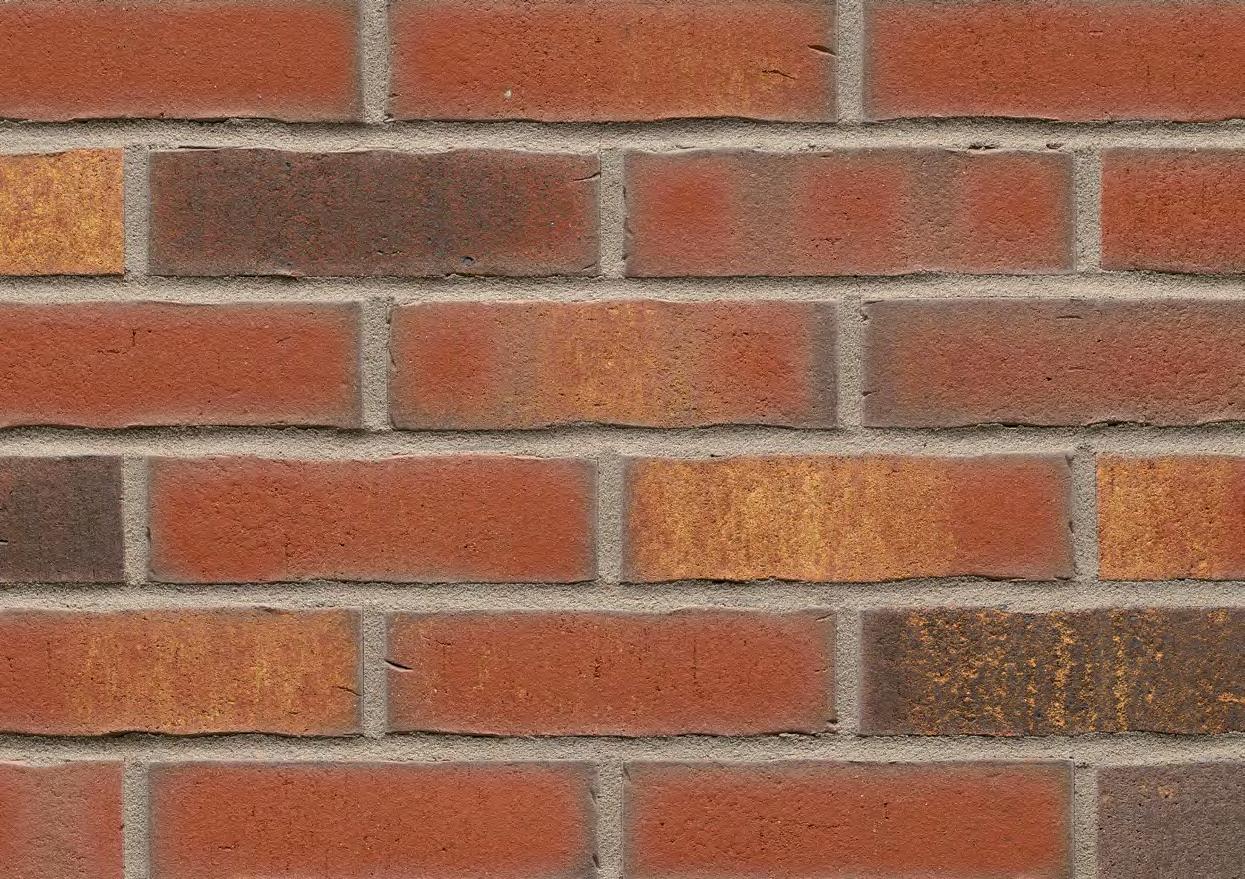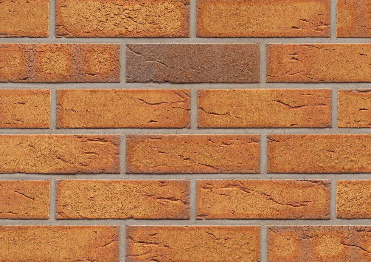 VASCU: Die Oberfläche der Vascu-Klinkerriemchen ist wenig strukturiert, unebene Kanten heben den klassischen BacksteinCharakter hervor. Bei vielen Sorten werden außerdem Kohle und Tonmehle zugesetzt und in verschiedensten Buntsortierungen gebrannt.