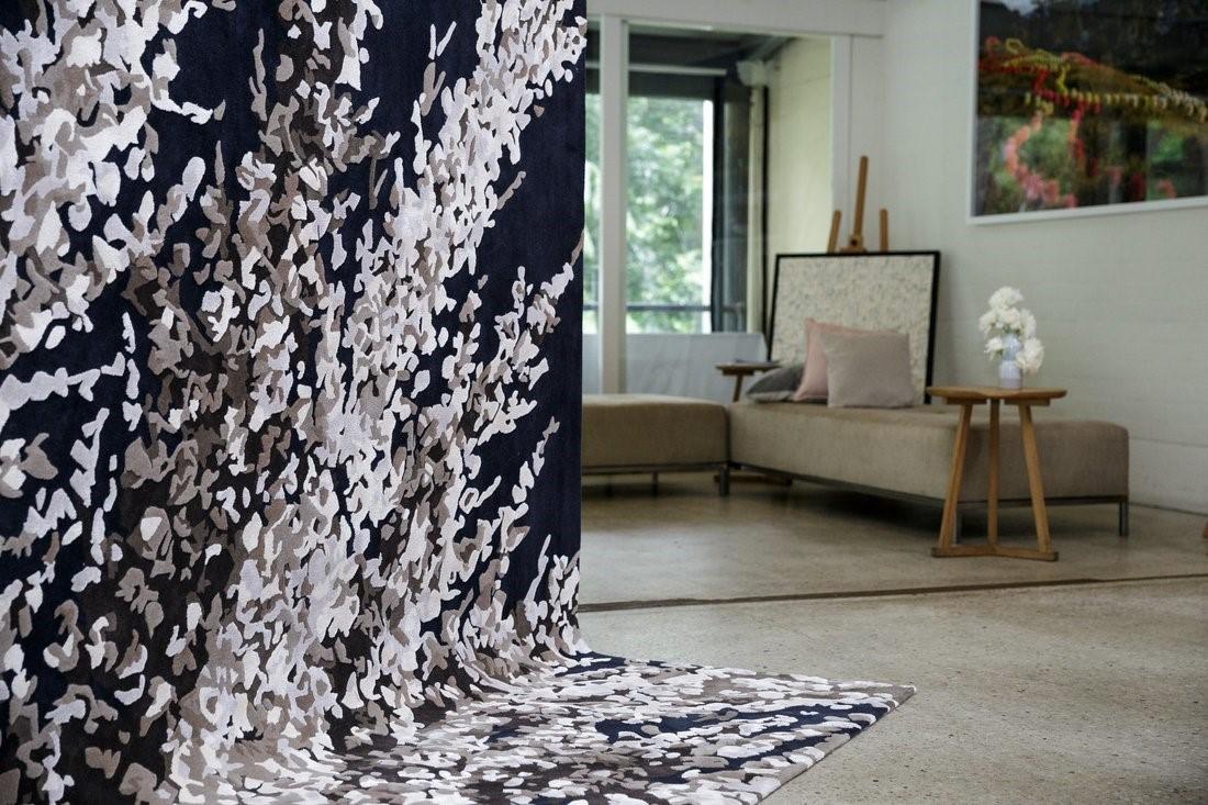 Rug collaboration. Bespoke hand tufted silk and wool, custom size rugs and carpet available. Pictured on the cover of Home Beautiful | Rug design by Felicia Aroney