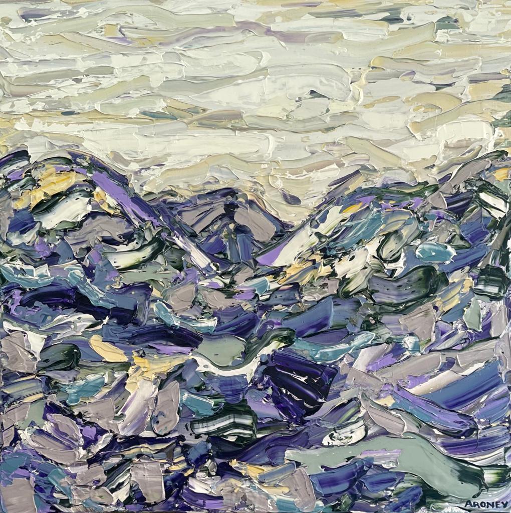PURPLE MOUNTAINS | 83x83cm acrylic on canvas, oak box framed $ 4400