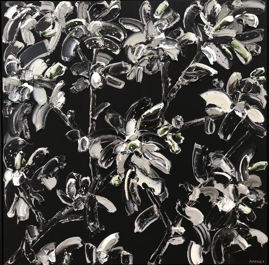 BLACK BLOSSOMS | 143x143cm oil, acrylic on canvas, black box framed $ 7980