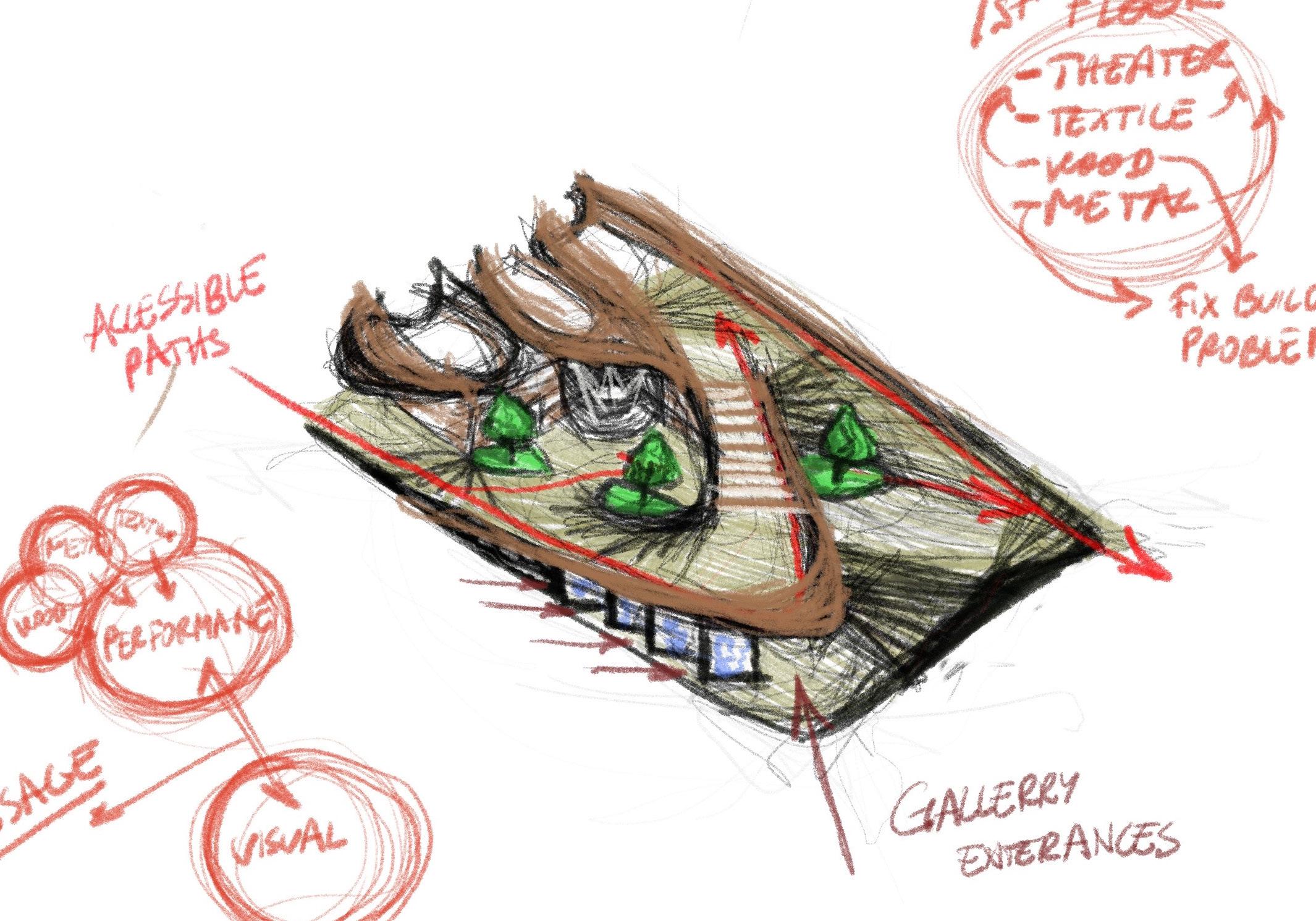 The design is heavily influenced to spread the community’s message through a squence of murals, art gallery, and an outdoor theater.