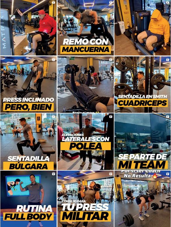 La paleta de colores vibrantes inspira vitalidad y acción, mientras que el diseño de los materiales promocionales efleja la calidad y profesionalismo del gimnasio.