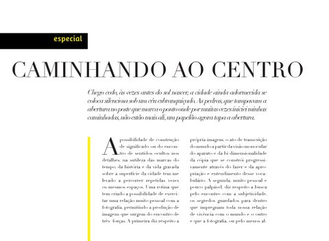 CAMINHANDO AO CENTRO Chego cedo, às vezes antes do sol nascer, a cidade ainda adormecida se coloca silenciosa sob um céu esbranquiçado. As pedras, que tampavam a abertura no poste que marca o ponto onde por muitas vezes iniciei minhas caminhadas, não estão mais ali, um papelão agora tapa a abertura.
