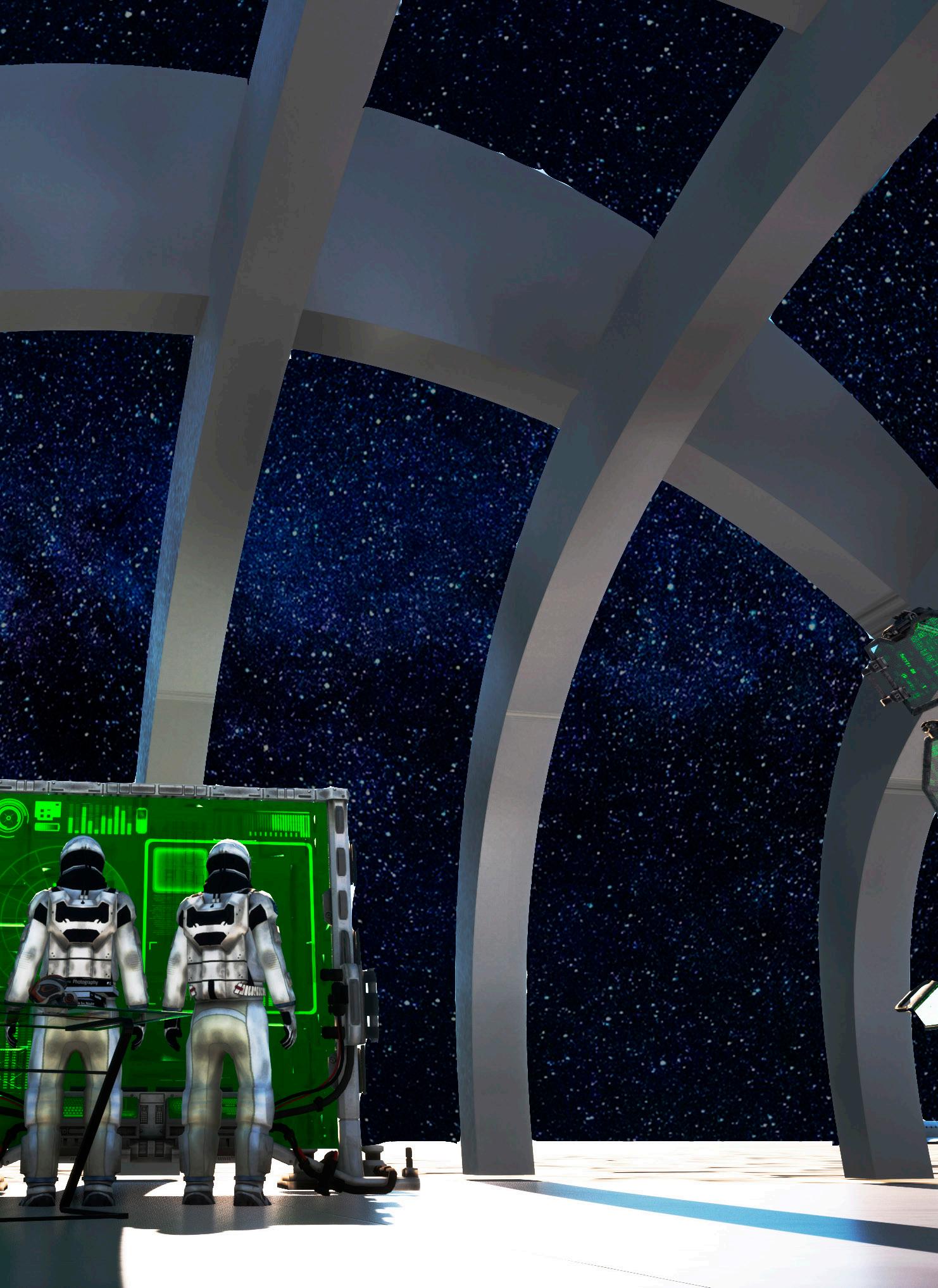 A primeira, tomando partido das planices da Lua, buscou-se criar uma galeria longa, juntnado cada módulo lateralmente