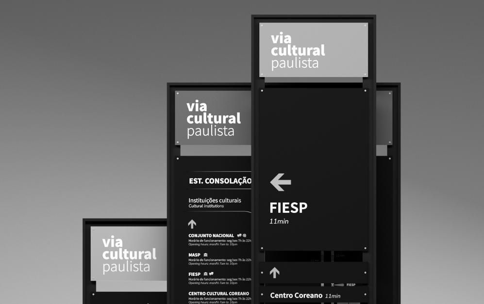 Este projeto de wayfindind busca catalogar as principais instituições de cultura e criar um sistema de sinalização orientar o turismo cultural, se destacando na paisagem sem destoar dela. Símbolos já presentes na avenida e no sistema de transporte público foram incorporados para facilitar a apreensão e se adequar ao ritmo do local.