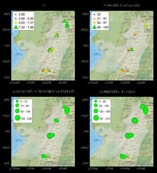 Del mismo modo, a partir del uso del protocolo de evaluación de hábitats fluviales, se observó que la mayoría de los ríos no se encuentran en condiciones naturales y a medida que descienden y atraviesan los cascos urbanos en las partes medias y bajas, predominan las condiciones de alterados e impactados.