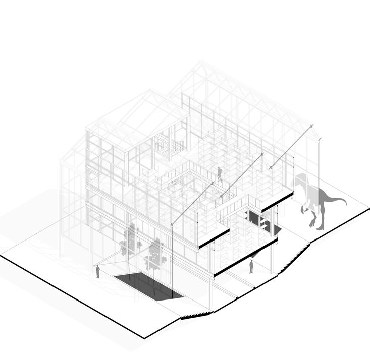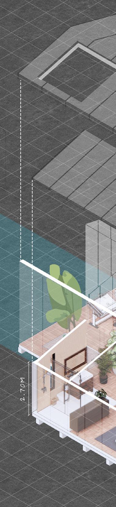 • A main volume: open and flexible, designed to facilitate any activity the occupants may want, it is a multifunctional space that could function as a gym, a painting studio, a park or any other space if necessary.
