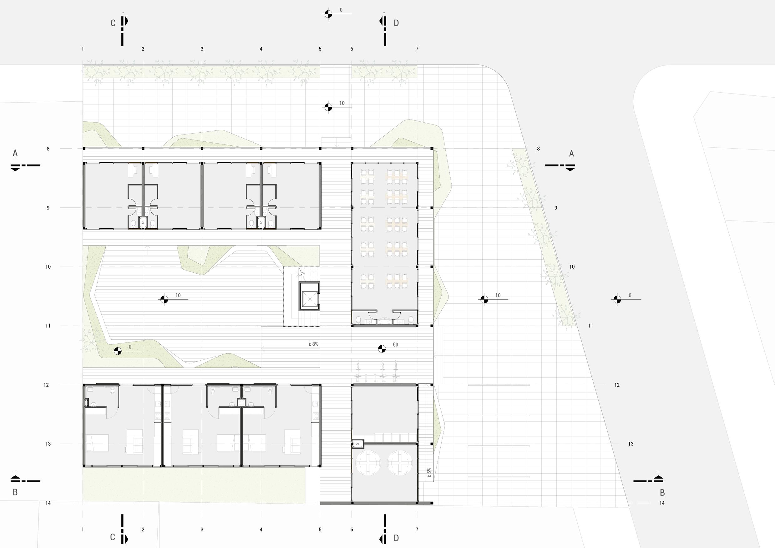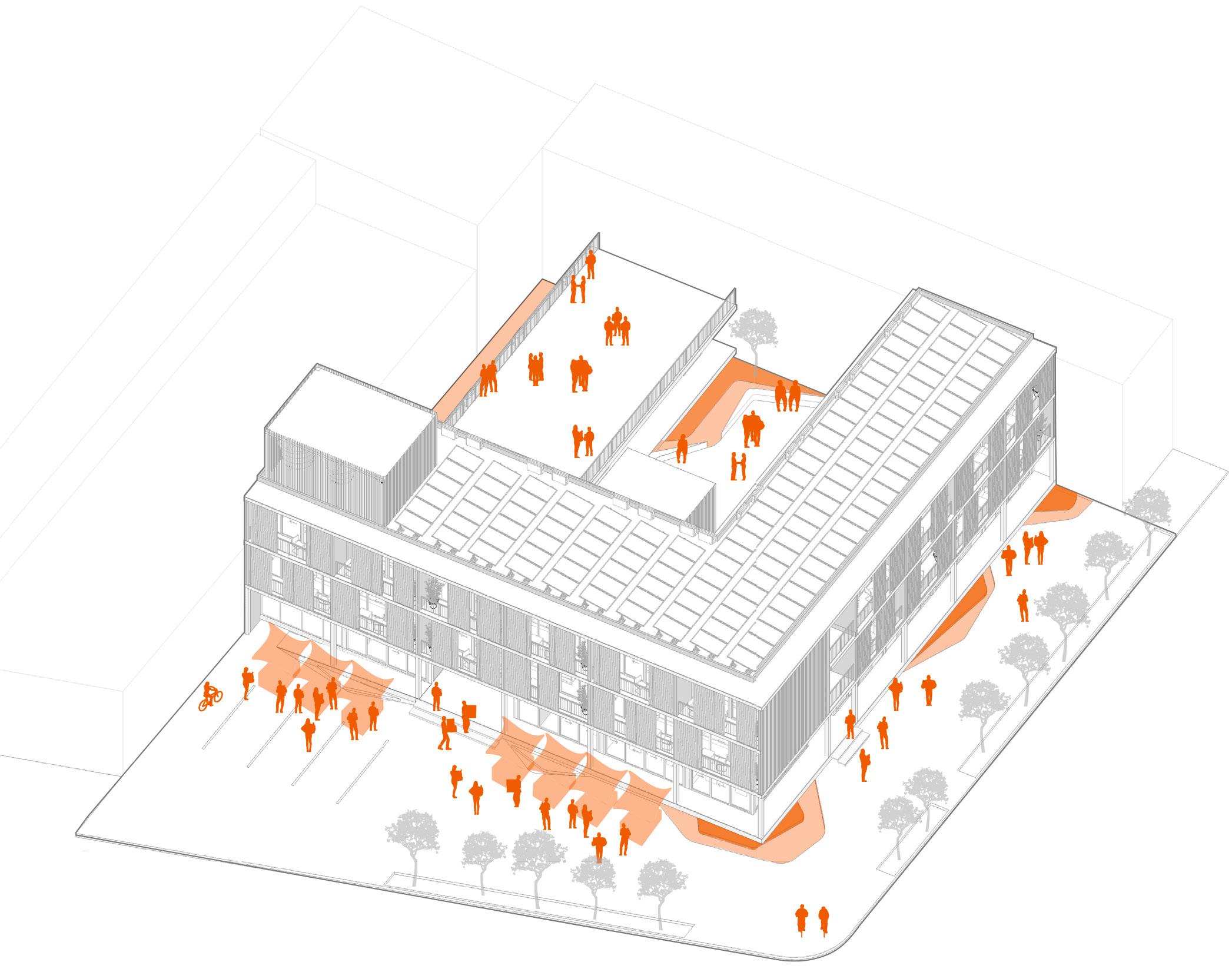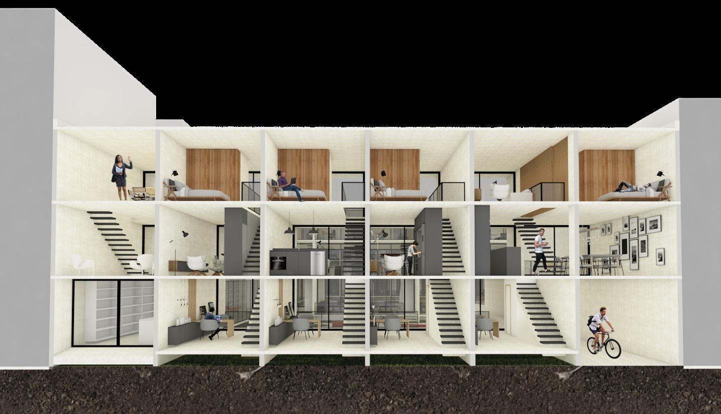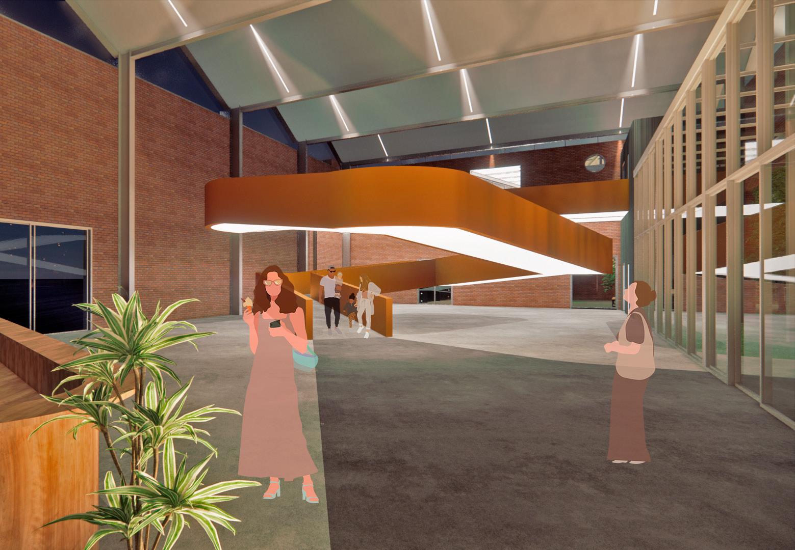 ano: 2020 autor: Felipe Nunes, Josiane da Mota e Bárbara Kayser orientadores: Carlos Bahima, Nicolas Palermo, Silvia Morel Correa softwares utilizados: Revit, Adobe Photoshop, Adobe Indesign e Adobe Ilustrator projeto arquitetônico VII - FAU UFRGS