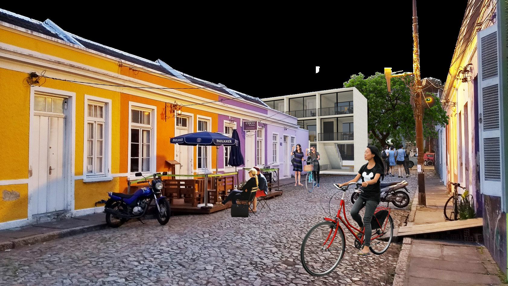 Com o intuito de oferecer moradia temporária, fonte de renda e e espaços de lazer para imigrantes na cidade de Porto Alegre, o projeto consiste na construção de uma edificação que permita o fortalecimento da pluralidade cultural e econômica do 4º Distrito, com espaços de moradia, produção e comércio;