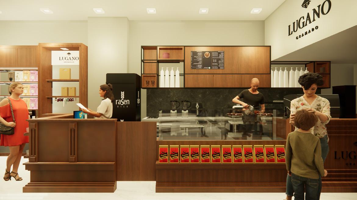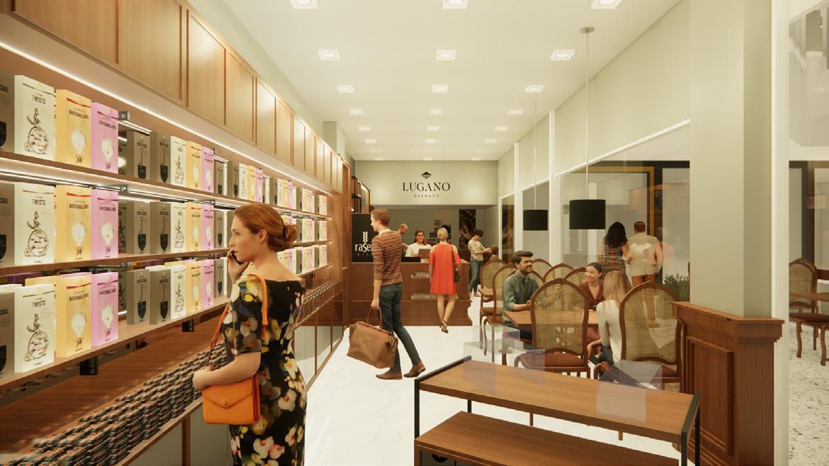 Projeto realizado para uma franquia da marca Lugano, utilizando os elementos de projeto considerados dentro do padrão da marca. Neste caso, o ponto se localizava dentro de uma loja de shopping, onde existe um manual norteando o que pode ou não ser utilizado no projeto. Com este, foi realizado um total de 6 lojas projetadas, em diversos pontos do país e com diferentes peculiaridades e características.