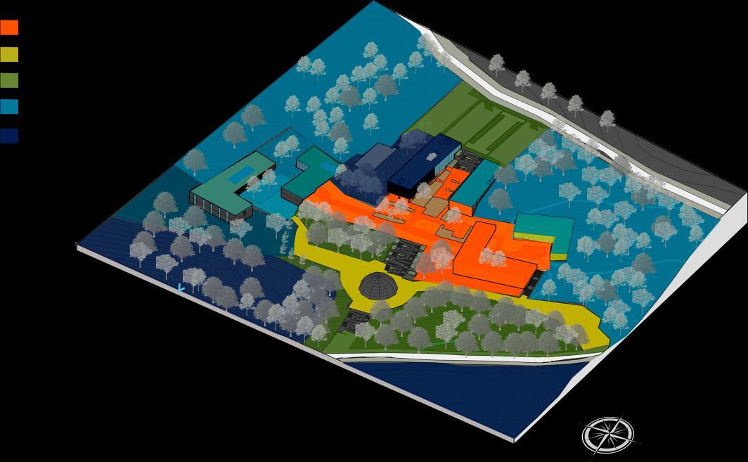 Dependiendo del contexto, la topografía y el programa arquitectónico se toman decisiones como desfasar algunos edificios que van a tener contraste dentro del proyecto .
