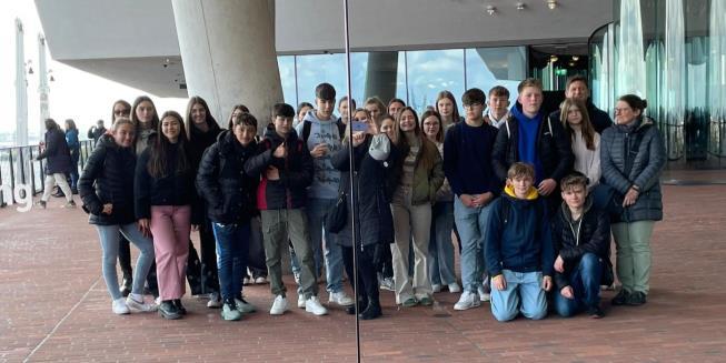 El primer dia, els nostres companys i professors van visitar Hamburg, on van poder veure la Filharmònica d’Elba, també coneguda com a Elbphilarmonie, que és una de les sales de concerts més grans i avançada del món. També van visitar el Rathus d'Hamburg, que és com es diu un ajuntament en alemany. A més, van tenir l’oportunitat de posar-se en la pell d’una persona cega durant una hora amb el Dialog im Dunkeln