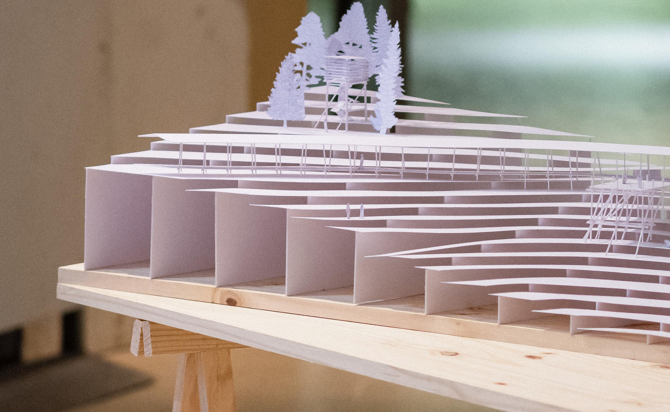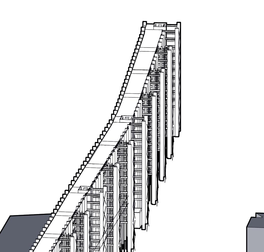 L’idée est de fluidifier en augmentant la densité visuelle, ou plutôt de donner à comprendre pourquoi on ralentit, à donner envie de ralentir. Tel un mur de scène, le bâtiment se veut monumental mais garde une certaine transparence comme un geste de politesse envers le voisinage, une invitation à regarder de loin se dérouler la grande pièce de théâtre qu’est la vie de ce bâtiment..