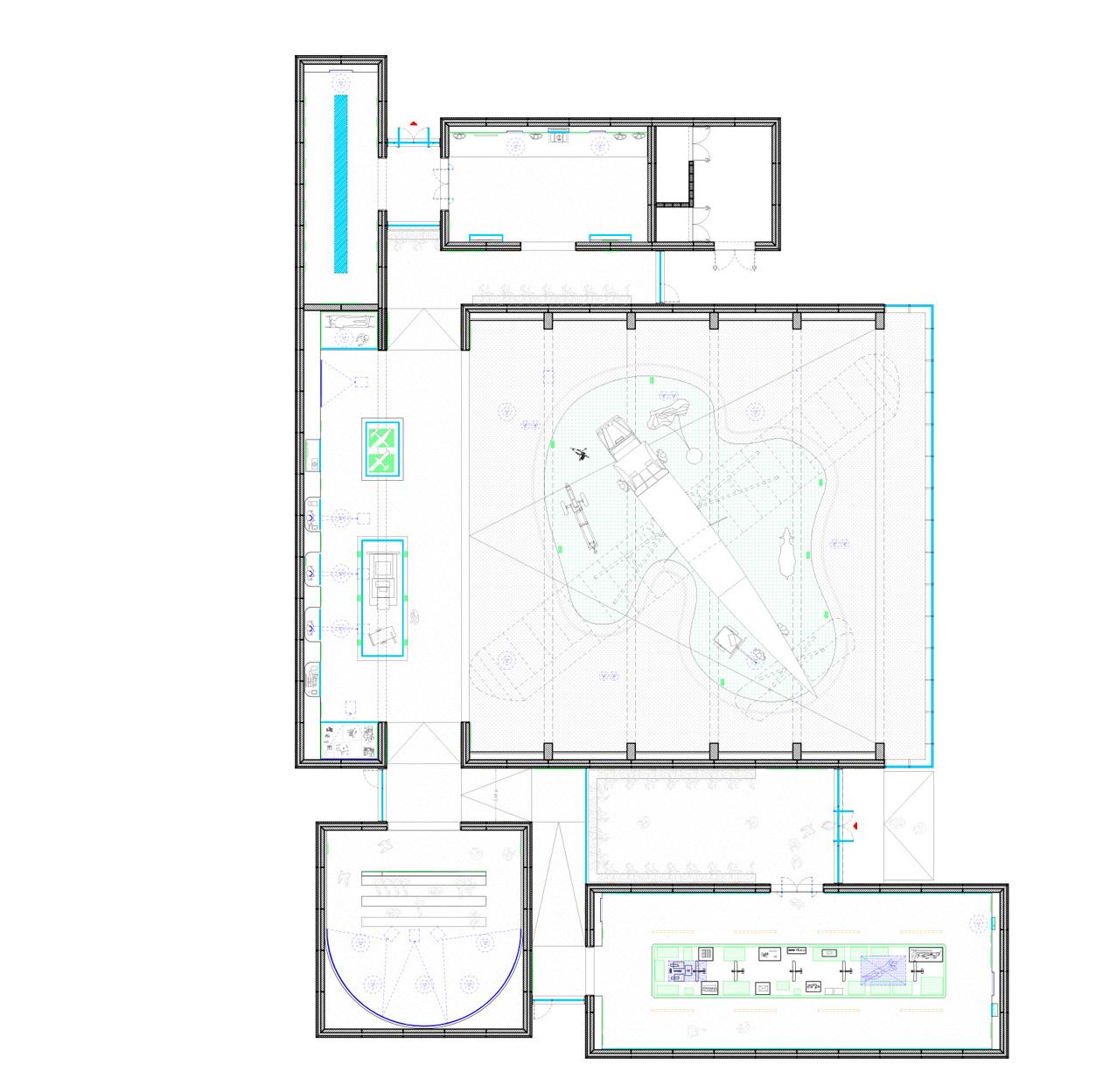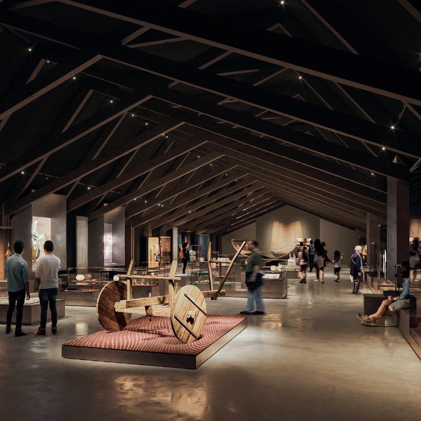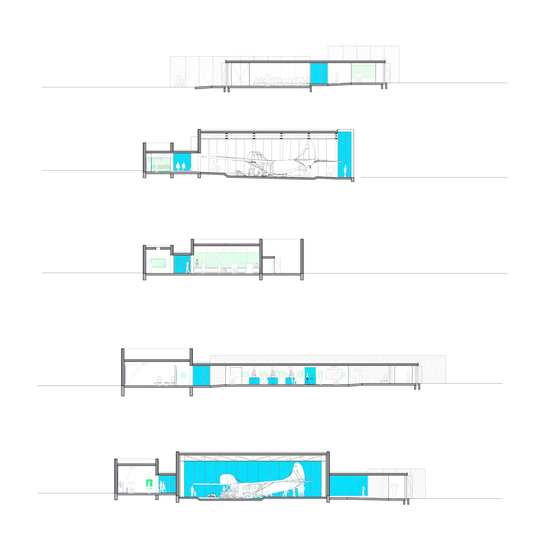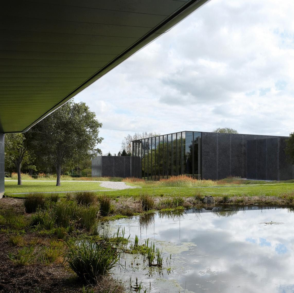 Le paysage environnant de l’Airborne Museum est un élément essentiel, porteur de la mémoire du 6 juin 1944. Ce projet vise à renforcer le dialogue entre l’architecture, la scénographie, et le site, intégrant le paysage comme toile de fond scénographique pour la collection exposée, notamment le planeur WACO. Le nouveau pavillon, situé à l’angle sud-ouest de la parcelle, complète l’ensemble muséal en définissant clairement les limites du site. Les visiteurs sont guidés à travers des volumes massifs, ponctués de cadrages sur le paysage, créant une promenade architecturale qui met en scène la relation intime entre l’intérieur du musée et son contexte historique.