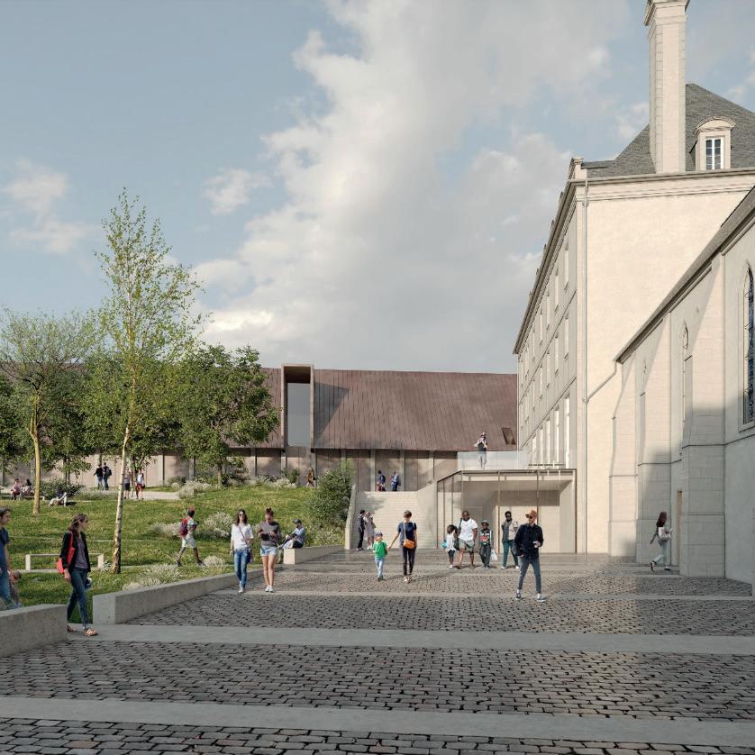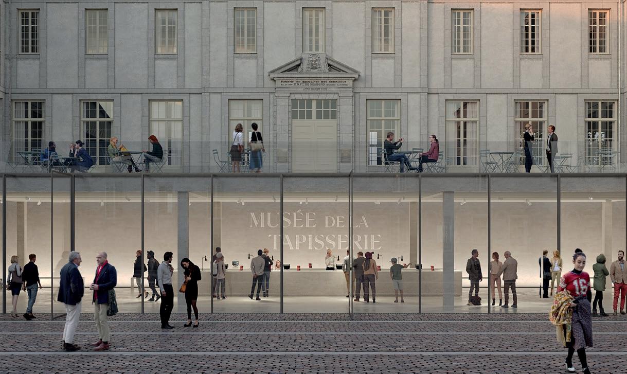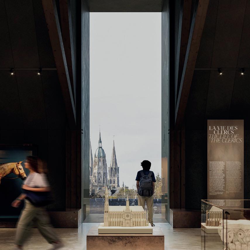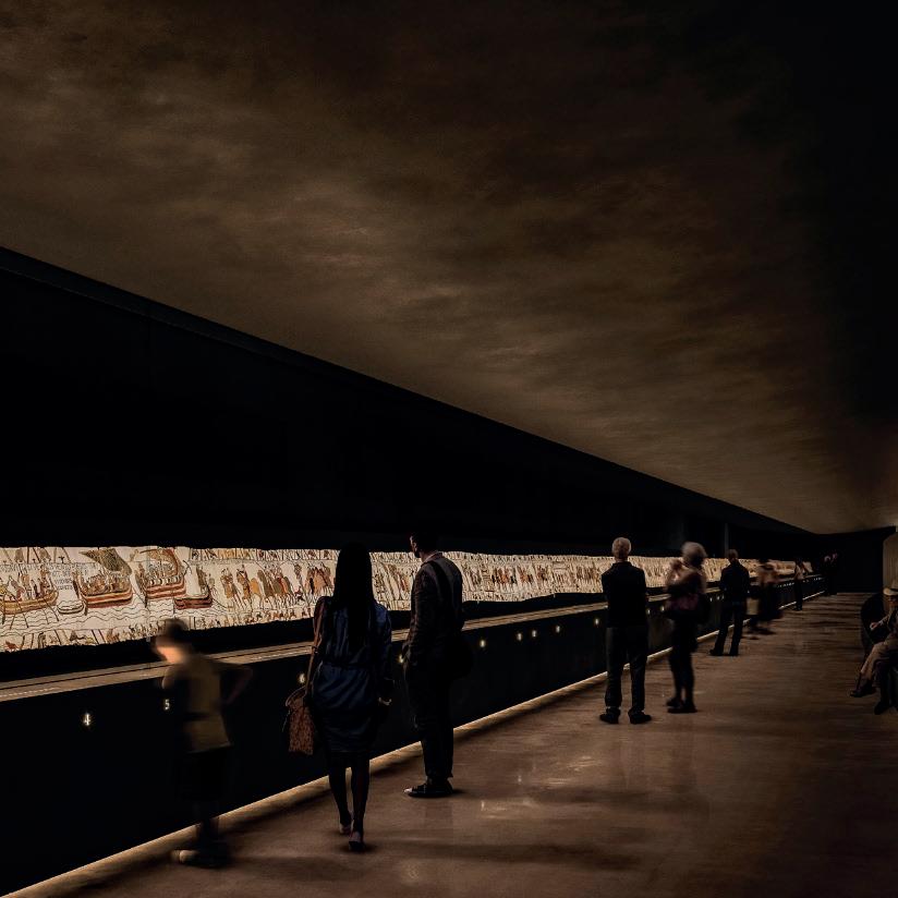 La Tapisserie de Bayeux, vestige historique d’une ampleur exceptionnelle (6,830 m), mérite d’être contemplée dans son intégralité. Le projet d’extension du musée vise à offrir cette expérience unique en prolongeant le séminaire existant tout en respectant son architecture classée. Cette nouvelle aile permet non seulement le déploiement complet de la tapisserie, mais est également un espace dédié à la recherche et à la restauration de l’œuvre. Parallèlement, les anciens jardins du séminaire sont réaménagés en un parc, redonnant vie à ces espaces verts et offrant aux visiteurs un cadre paisible qui dialogue harmonieusement avec la richesse historique du lieu.