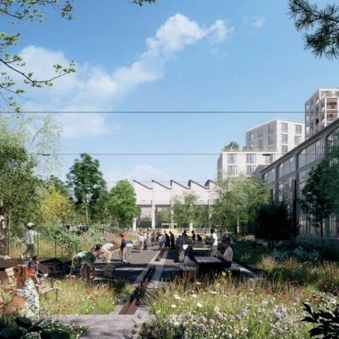 Le projet du Jardin Mécano vise à créer un espace public vivant et fonctionnel, en intégrant divers usages et services à proximité des usagers. Organisé autour d’un jardin public et d’une rue diagonale, l’espace est animé par des commerces, cafés, et ateliers, garantissant une présence vigilante à chaque coin. Les formes urbaines, qui relient patrimoine industriel et urbanisme haussmannien, s’orientent vers le soleil, avec des immeubles en peigne au Nord et alignés au Sud, posés sur un socle de services. Inspiré par la pensée de Jane Jacobs, le projet célèbre la diversité, la mixité, et le dynamisme piéton, où l’ordre apparent naît du désordre créatif et sécurisant des interactions urbaines.