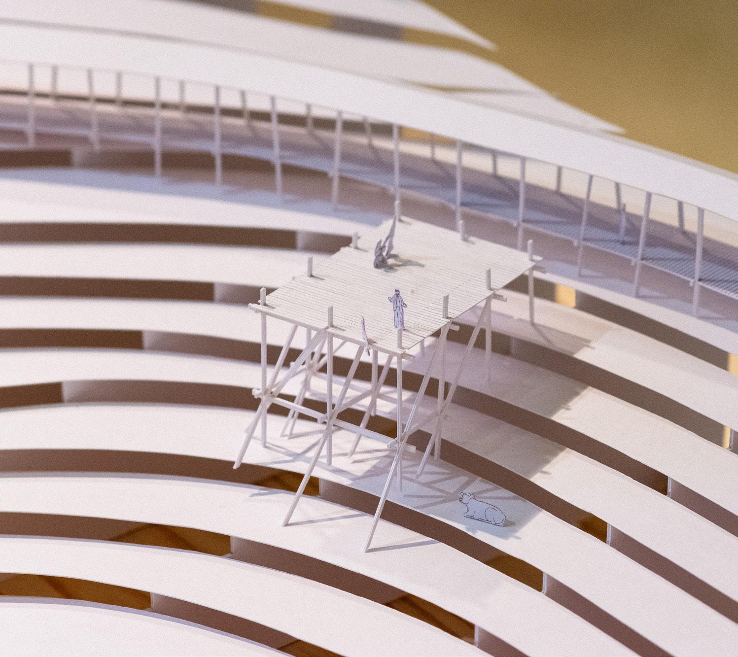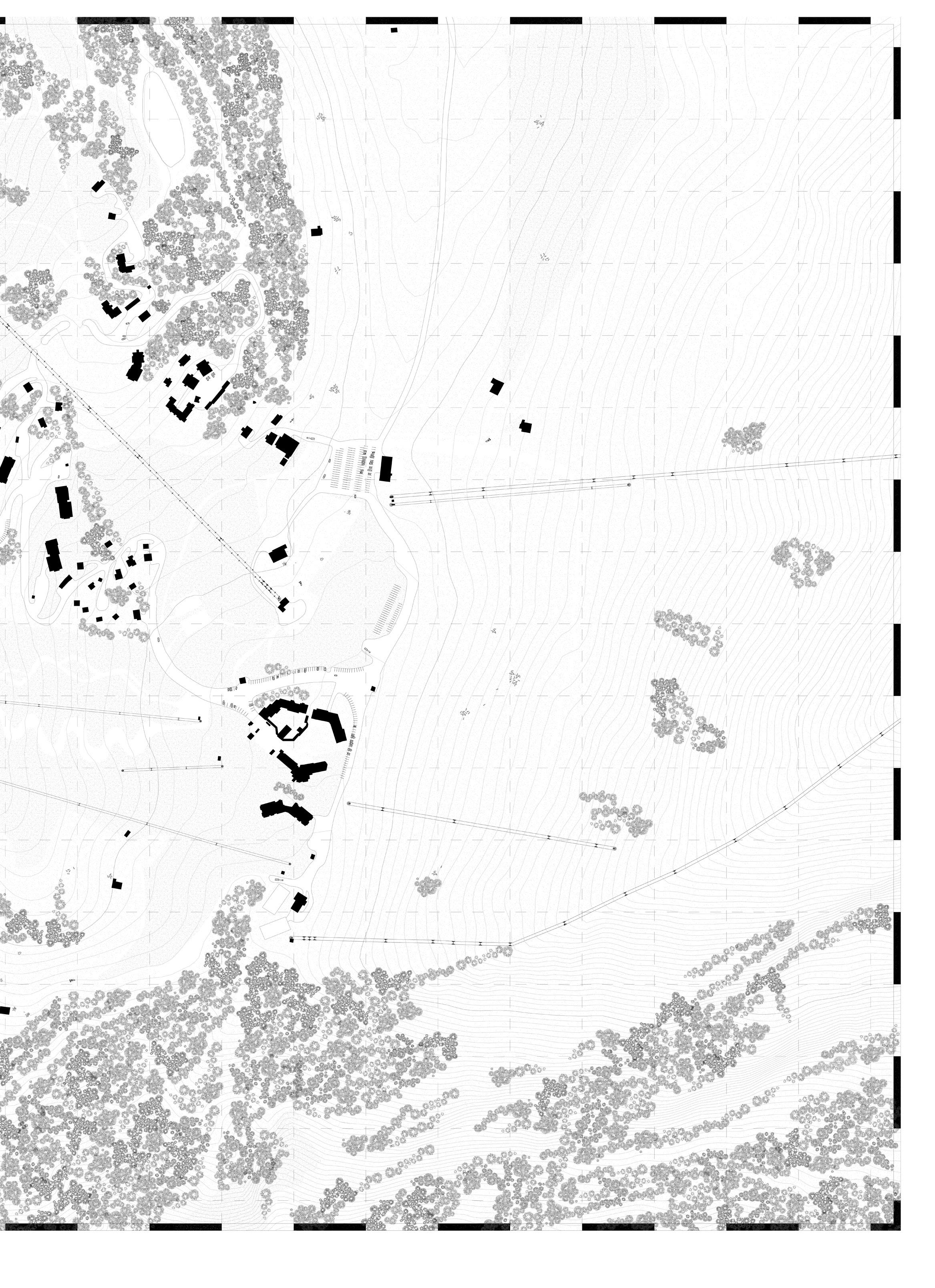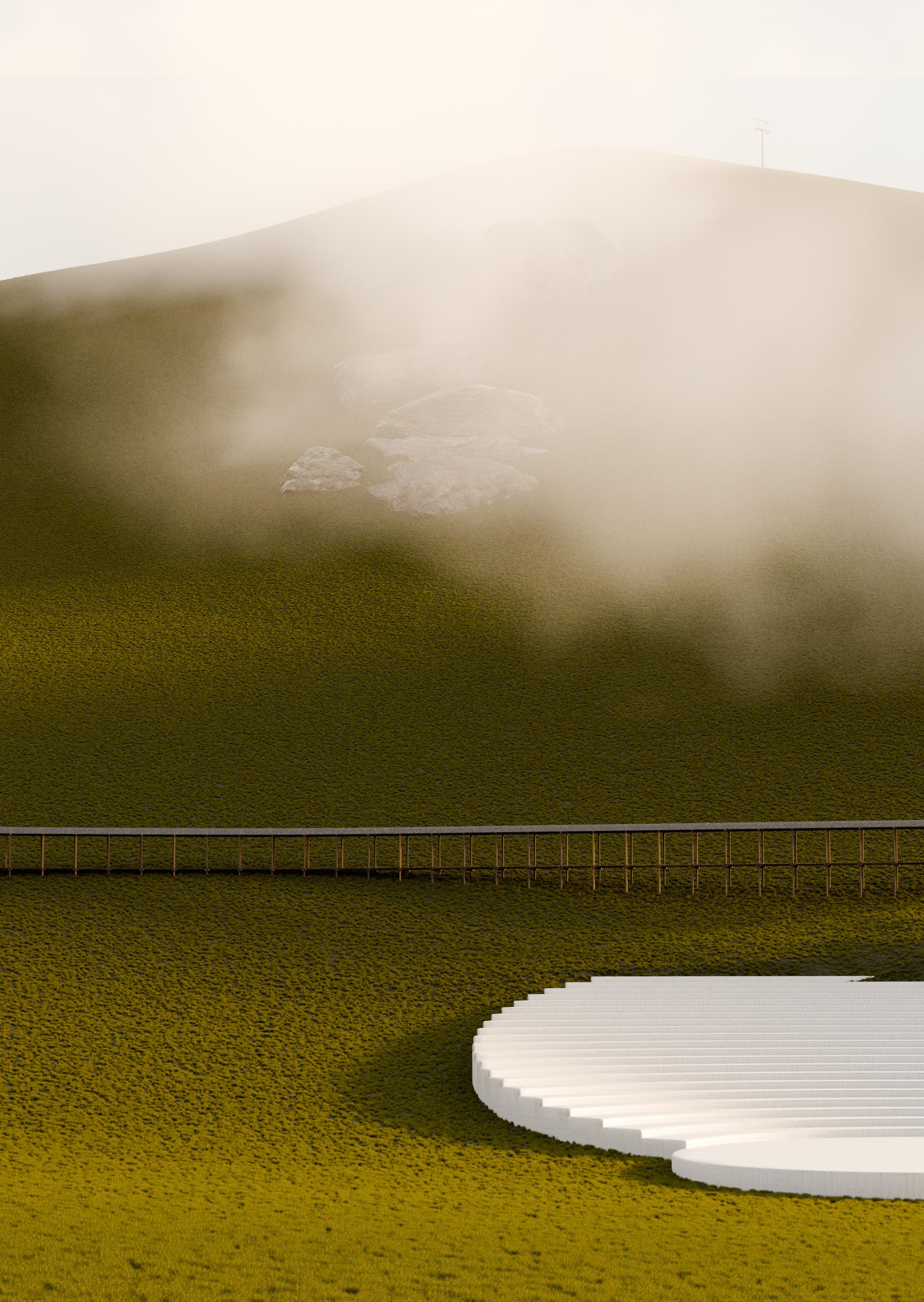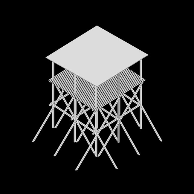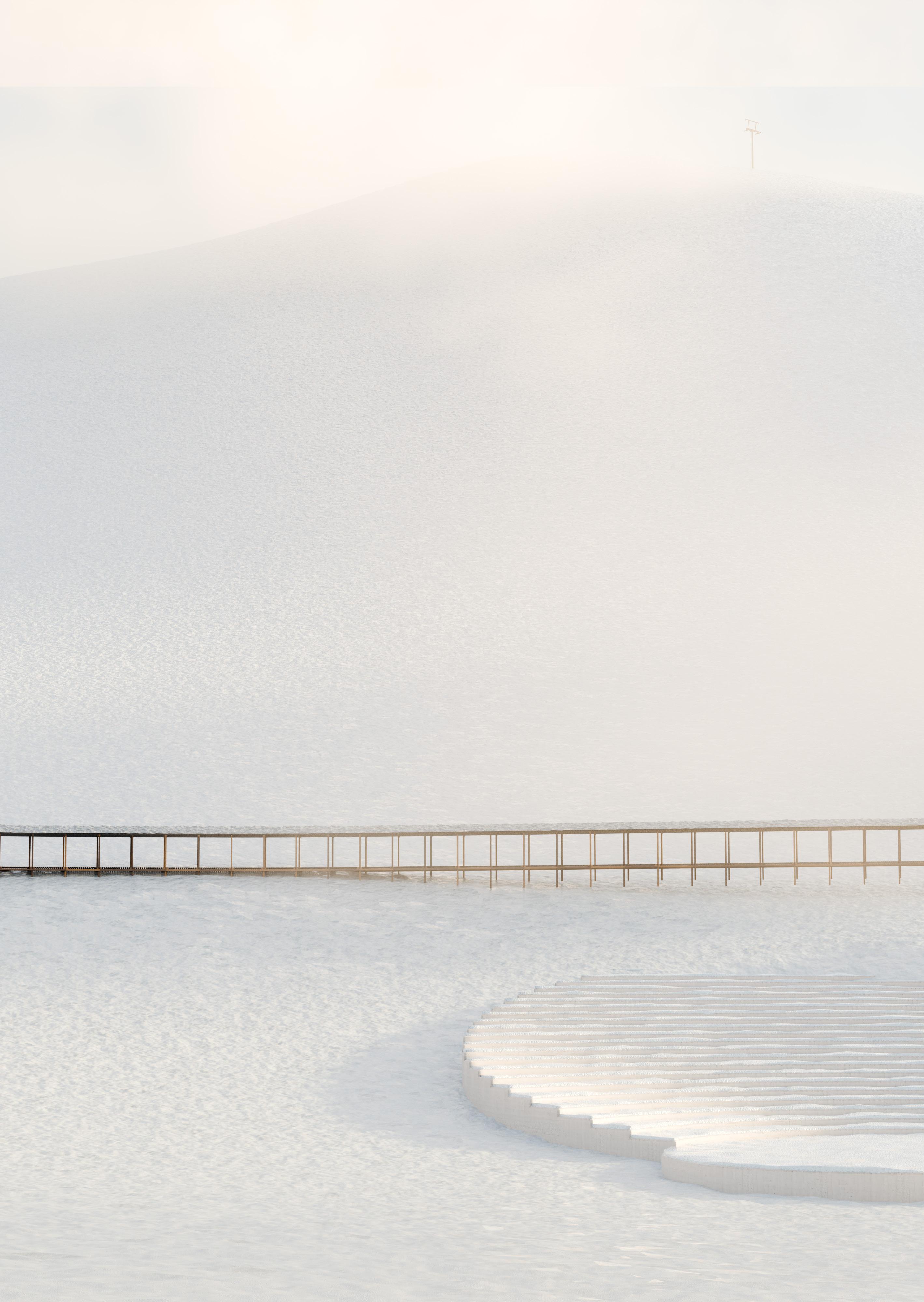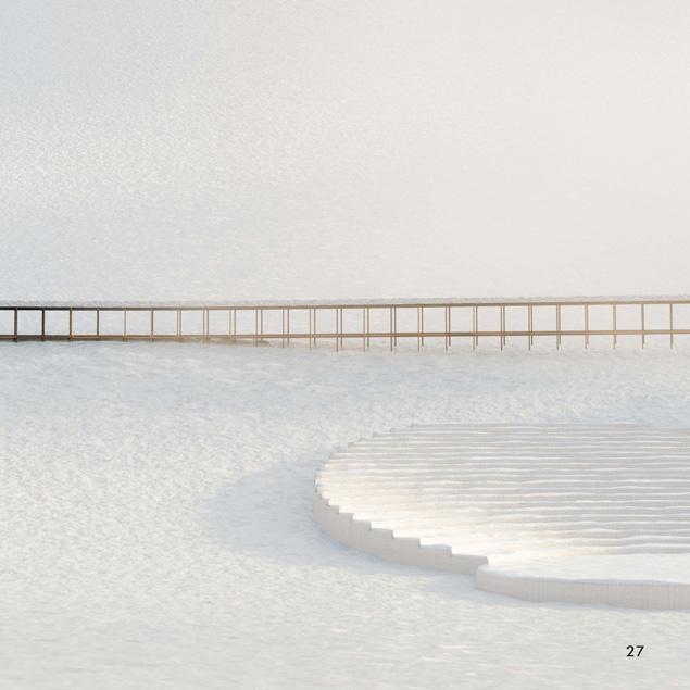 Enfin, un ensemble de pavillons, issus d’un abécédaire des usages de la montagne, ponctue les passerelles. Ces structures offrent aux usagers des points de rassemblement et de contemplation, des abris collectifs, ou encore des points d’observation solitaire. Certains pavillons cadrent sur la nature, tandis que d’autres, situés en retrait de la station, cadrent sur celle-ci, offrant ainsi aux usagers une échappatoire temporaire à l’urbanité incessante de nos sociétés, qui s’est étendue jusqu’aux sommets de nos montagnes.