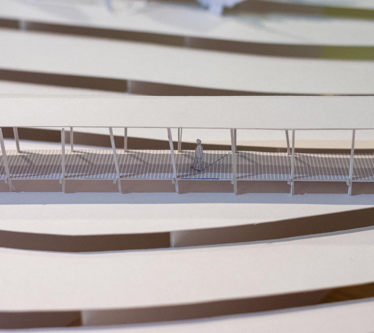 La création de passerelles permettant de circuler horizontalement dans la station sans recours à la voiture est l’un des premiers éléments de ce projet. Reliant les différents pôles du site et unissant les trames vertes et bleues, ces passerelles se distinguent par leur longueur impressionnante. Toutefois, la finesse de leur assemblage leur permet de s’intégrer discrètement dans le paysage, sans accaparer l’attention des usagers du col.