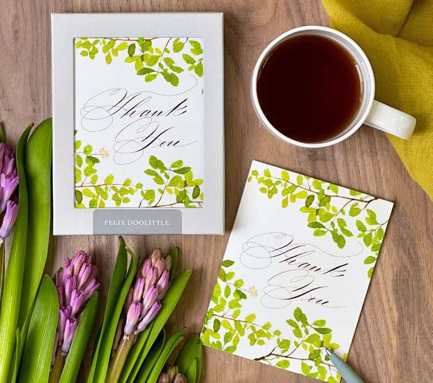All our products are handcrafted and hand-finished with the utmost care. Our personalized stationery is made fresh to order with our signature papers and artisanal workmanship. The choices we make about what we design and develop, how they are produced, and the shipping materials we use, all share a sustainability approach. Being green is being Felix Doolittle.