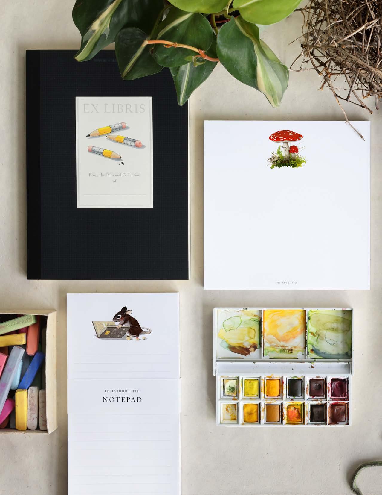 Fe L ix d oo L it t L e is a stationery company specializing in creating papers and gifts based on artist Felix Fu’s watercolor illustrations — each piece is a miniature work of art. Founded in 2003 by Felix and his wife, photographer Loren Sklar, Felix Doolittle strives to elevate the very human arts of writing, reading, and living.