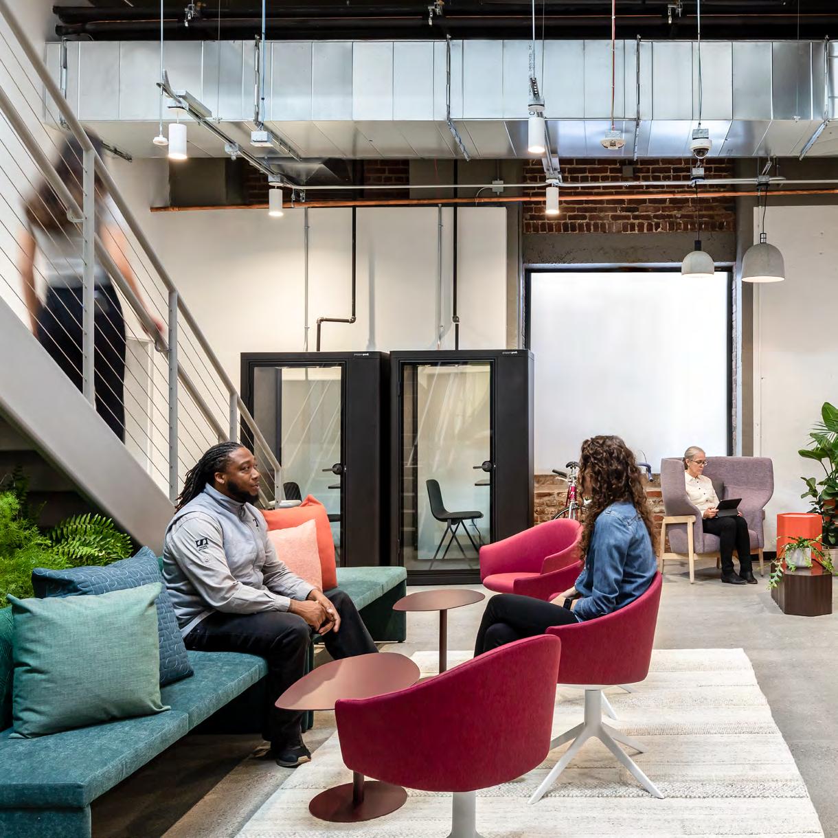 • Prioritize enclosed, hybrid-ready “we” spaces. Move beyond open-plan layouts and invest in enclosed collaboration zones equipped with reliable technology and acoustic privacy, and environmental controls to support hybrid meetings and focused teamwork.