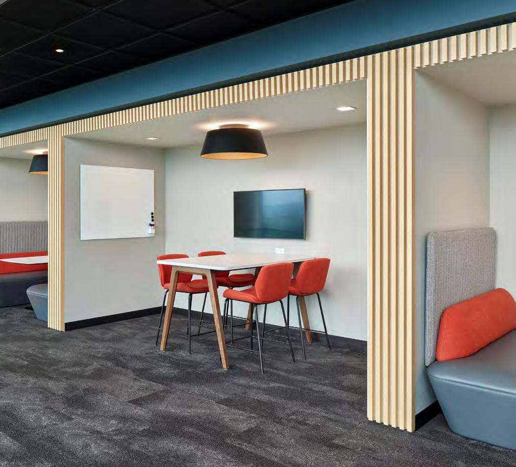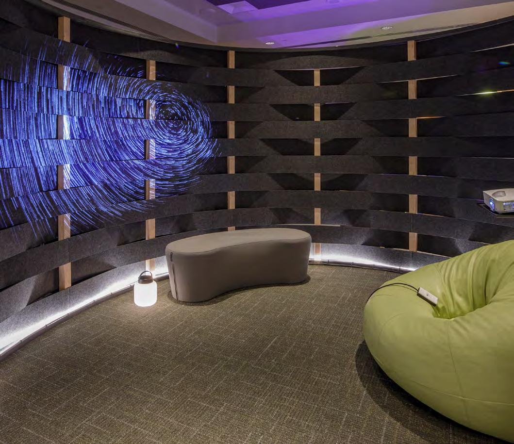 We teamed up with vendors such as EzoBoard, Mohawk, Smith Systems, Lonestar and Pineapple to craft the ZenDen. We brought together a mix of offthe shelf furniture solutions and custom-built installations in the environments.