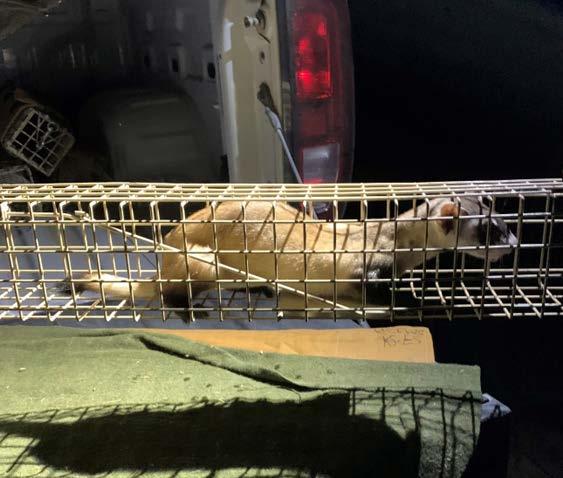 fragmentation) continues to threaten the ferrets. Stantec biologists spent nights driving through active prairie dog colonies to locate ferrets via spotlighting and placing traps in burrows with observed ferrets. Captured individuals were transported to an onsite veterinarian processing station. Processing typically included the removal of ticks and administering relevant vaccinations and flea treatments to slow or prevent the spread of