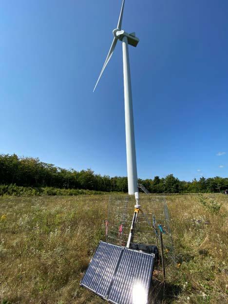 of camera vs. detector in evaluating risk to bats. Stantec has partnered with Wildlife Imaging Systems (based in Vermont), who will be analyzing the video data. At each site, the NREL funding is also leveraging ongoing monitoring that Stantec was already performing for the companies operating the wind projects. This exciting project is a great example of adding research components to monitoring tasks and conducting rigorous science while still providing our clients with the data they need to manage risk to bats at their wind energy projects. Adam, Caroline, and Trevor Peterson (BC 1956) presented an overview of this project during the 2023 North American