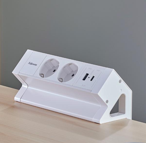 Le soluzioni di alimentazione da scrivania posizionabili sul piano, come power spot e le stazioni di ricarica USB, aiutano a mantenere il piano di lavoro ordinato e i dispositivi sempre a portata di mano.
