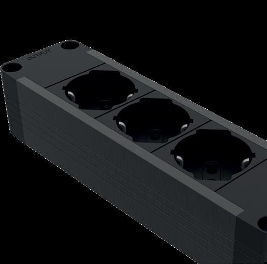 Power block, un elemento indispensabile per ogni spazio di lavoro. Variante da 3 a 6 prese, per fornire alimentazione a tutte le soluzioni sopra/sotto scrivania. Tutti i power block sono dotati di connettori di ingresso e uscita a 3 poli, garantendo una distribuzione dell’energia sicura e affidabile per ambienti professionali di design e costruzione. Struttura in alluminio. Montaggio diretto sulla superficie con le piastre metalliche incluse, oppure posizionamento libero nella canalina portacavi sotto il piano. Da abbinare sempre a un cavo di collegamento e/o a un cavo di estensione per connettere l’alimentazione ad altre scrivanie. (Considerare sempre il consumo massimo di energia di una scrivania).