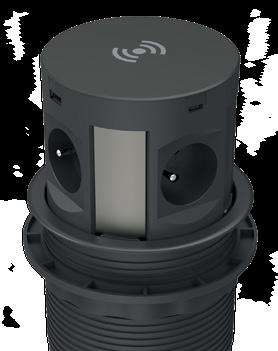 La soluzione definitiva per i tavoli riunione. Sistema “Push to Open” per accedere a prese di alimentazione e ricarica USB/Qi. Offre connettività senza interruzioni e si richiude semplicemente con una pressione quando non è in uso.