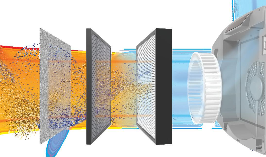 HEPA z filtrem węglowym aktywowanym, aby wychwytywać zarówno ultradrobne cząstki, jak lotne związki organiczne (VOC).